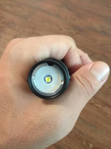 шло 43 дня в татарстан. выслали самой ужасной по доставке грузов из китая компанией CDEK. вечно у них не чего толком не отслеживается. и идёт очень долго. о фонаре сам фонарь сделан хорошо. нечего не болтается. в простой комплектации без аккумулятора.аккумулятор к нему надо модели 18650.простая пальчиковая батарейка туда не подходить. фонарь имеет три режима свечения, это первый самый яркий потом чуть тускнее и потом стробоскоп. что бы выключить фонарь надо все эти три режима пройти. сразу нельзя отключить фонарь. а если долго держать кнопку то включается режим SOS. светит фонарь голубоватым оттенком. на 3 фото видно. и фонарь имеет засветы по кругу если выставить фокус полностью.сделал ещё 4 фото чем отличается светодиод v6 от светодиода T6, слева v6 а справа T6. остальное позже добавлю.