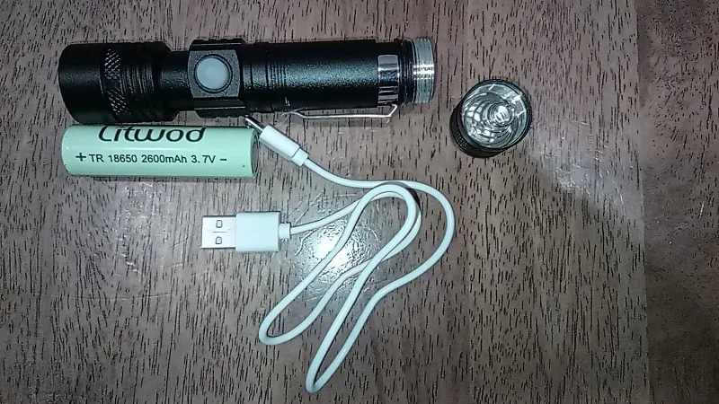 Фонарь просто шикарный и очень яркий - чисто карманный вариант с мощным аккумулятором и зуммом! И очень важно,что аккумулятор заряжается прямо в фонаре через microusb кабель!