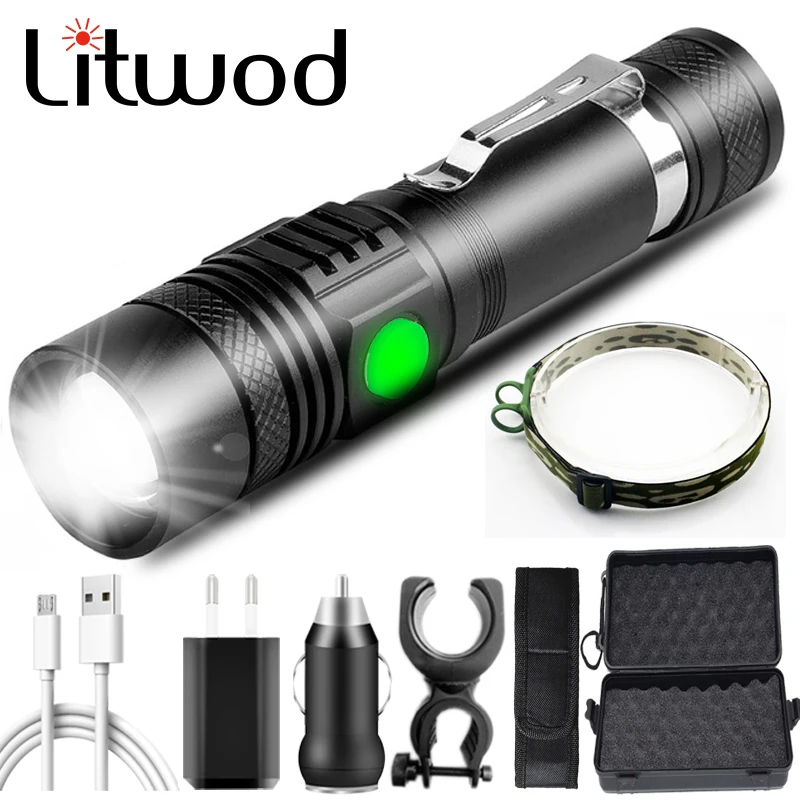 Светодиодный фонарик Litwod XP-L, 6, 6 U3 T6, перезаряжаемый светильник алюминиевый зум, водонепроницаемый фонарик, аккумулятор XM-L2, для велосипеда, 18650