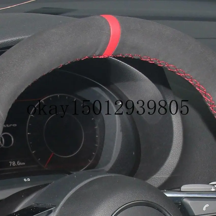 Замша полностью черного цвета, прошитая вручную чехол рулевого колеса автомобиля для Audi TT 2017