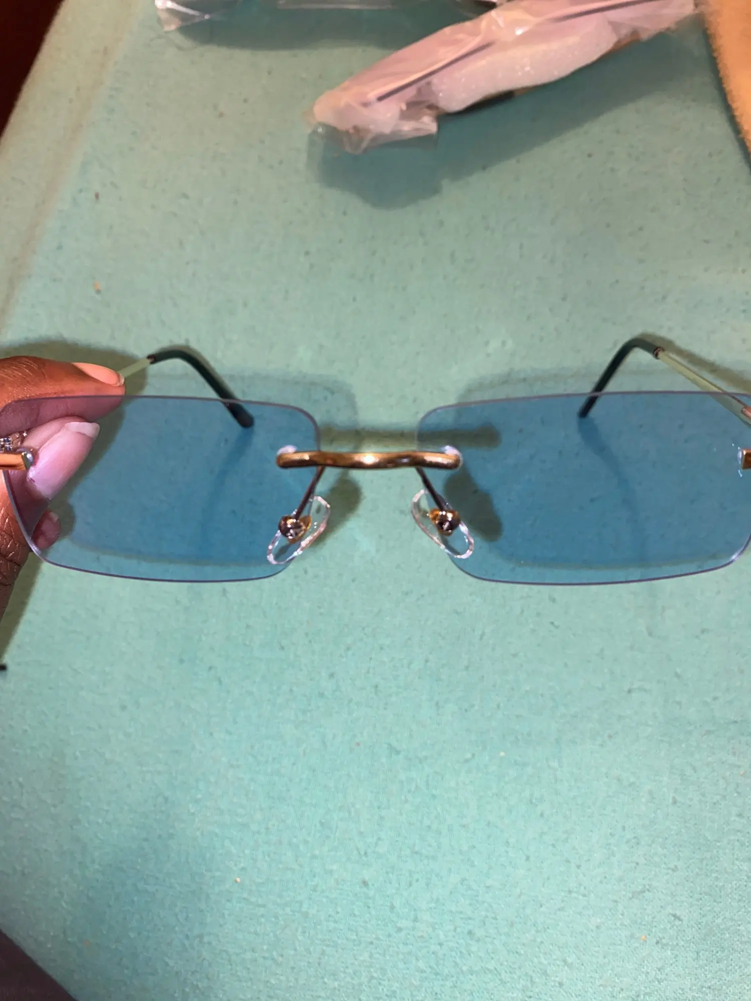 отличные очки. цвет идеально голубой. единственное - хотелось бы металл менее блестящий. может быть белый. было бы круче