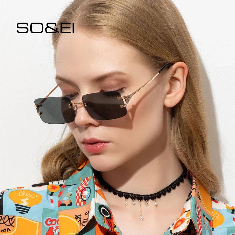 Солнцезащитные очки Мужские SO EI, прямоугольные, без оправы, винтажные, красные, синие и зеленые линзы, UV400