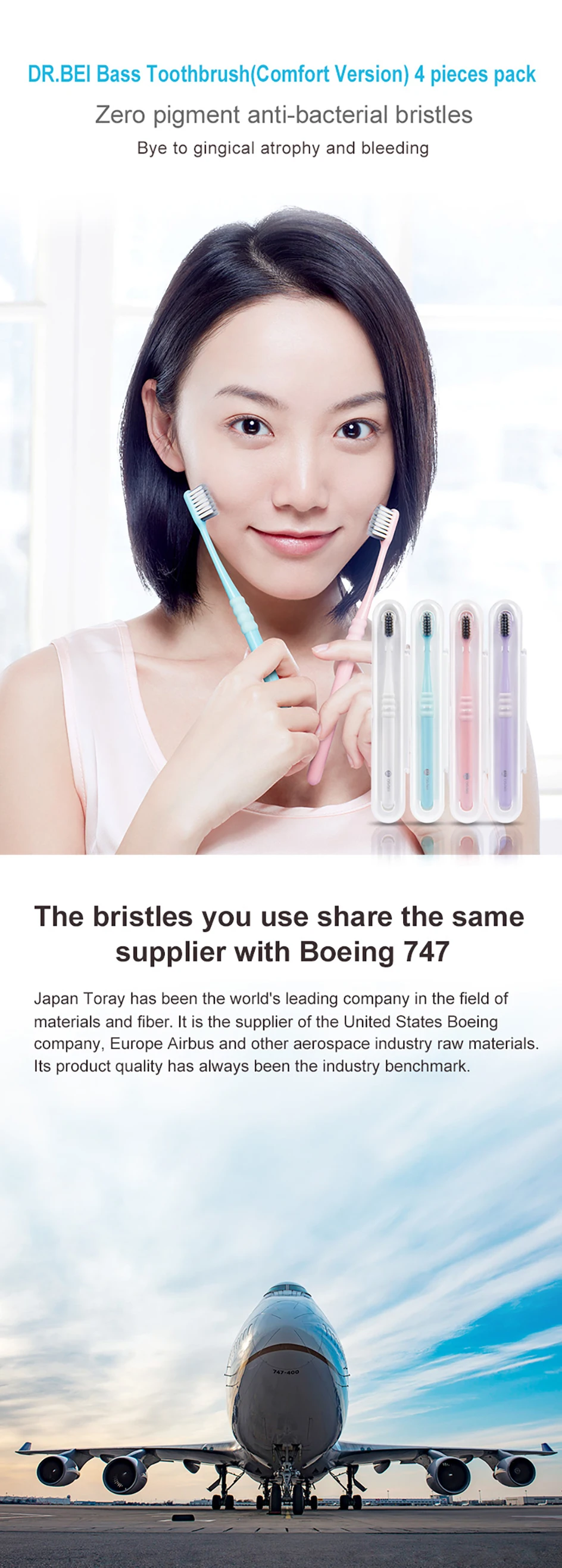 Антибактериальные щетинки с нулевым пигментомДо свидания гингическая атрофия и кровотечениеЩетинки, которые вы используете, имеют один и тот же поставщик с Boeing 747Japan Toray является ведущей компанией в мире в области материалов и волокна. Это Поставщик американской компании Boeing, Европейского Airbus и других сырья аэрокосмической промышленности. Качество продукции всегда было отраслевым ориентиром.