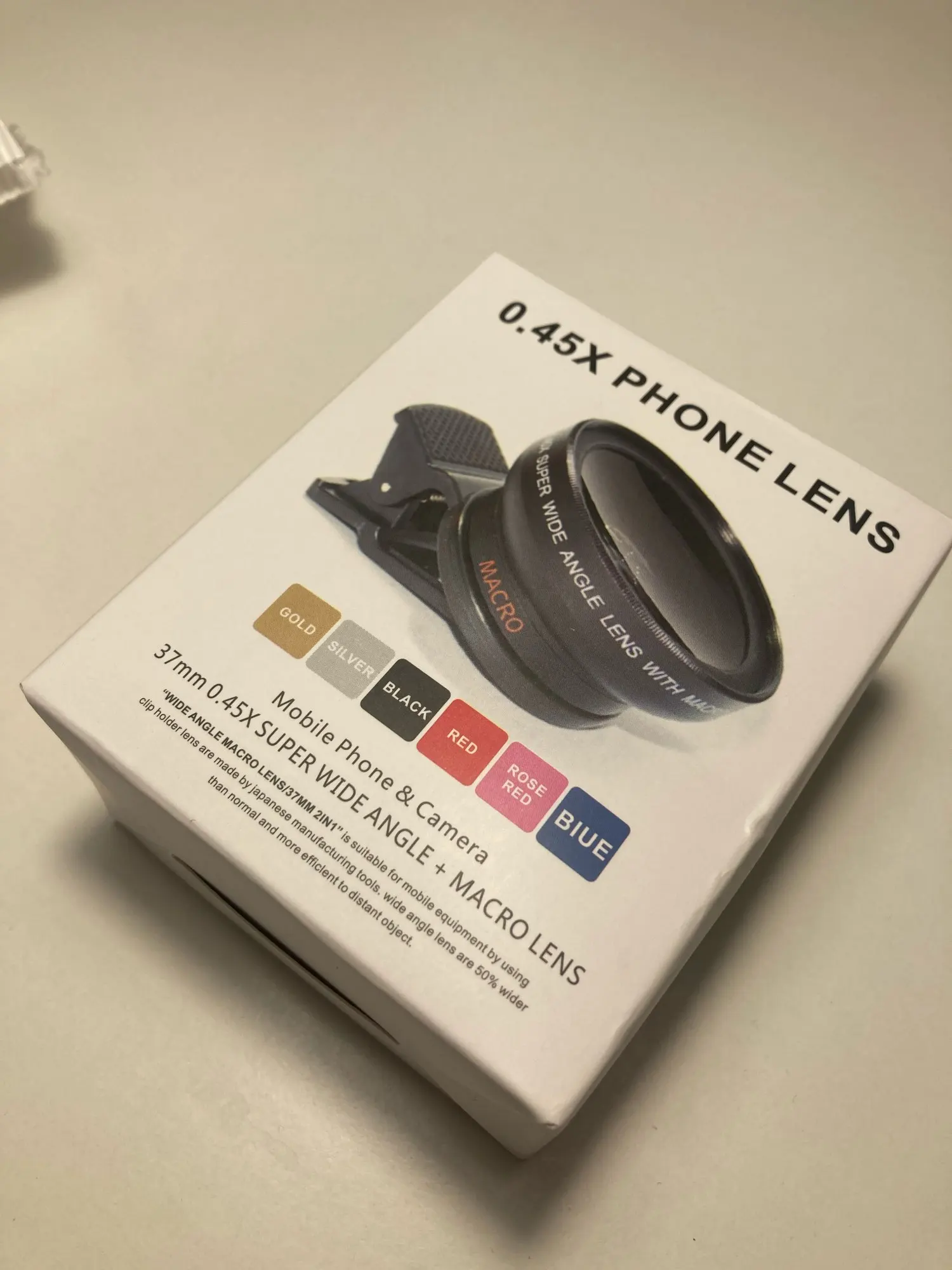 1 * 0.45X HD широкоугольный объектив1 * 12.5X макрообъектив1 * Универсальный зажим1 * Верхняя крышка объектива1 * Нижняя крышка объектива1 * упаковка кожаная сумка1 * упаковочная коробка
