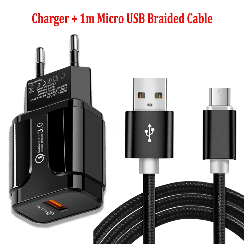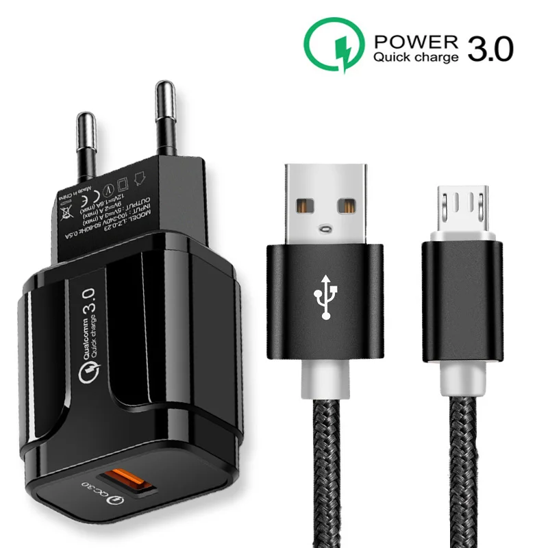 18 Вт QC 3,0 быстрое зарядное устройство для путешествий EU Plug + Micro USB кабель для Meizu M3S M3 M5 M8 Lite Note 3 5 8 LG G3 G4 USB кабели