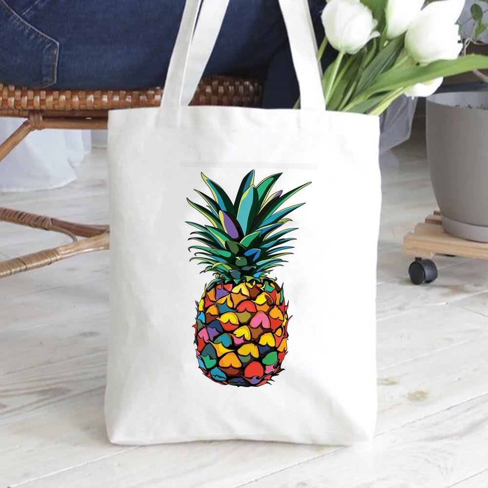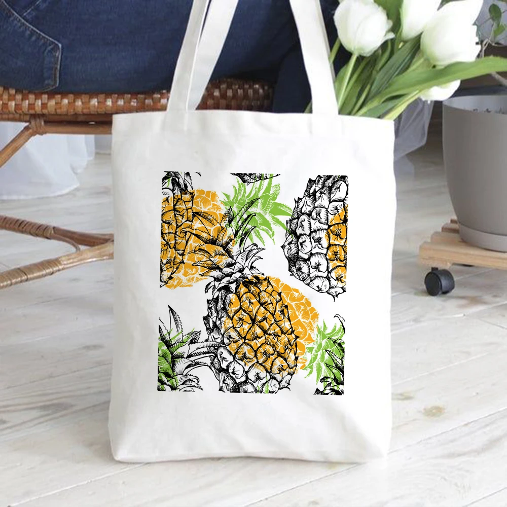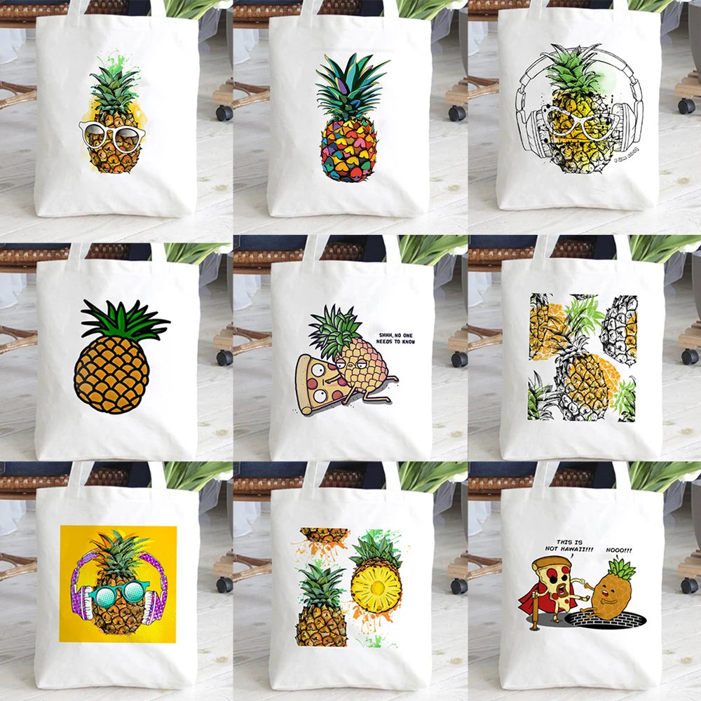 Модная белая Холщовая Сумка-тоут для покупок с принтом ананаса, пиццы, Экологически чистая многоразовая дорожная Сумочка для книг, подарок для студентов