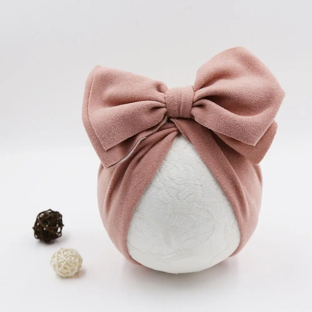 Шапка-тюрбан детская, однотонная, для девочек, с большим бантом, реквизит шляпа для фотографирования новорожденных