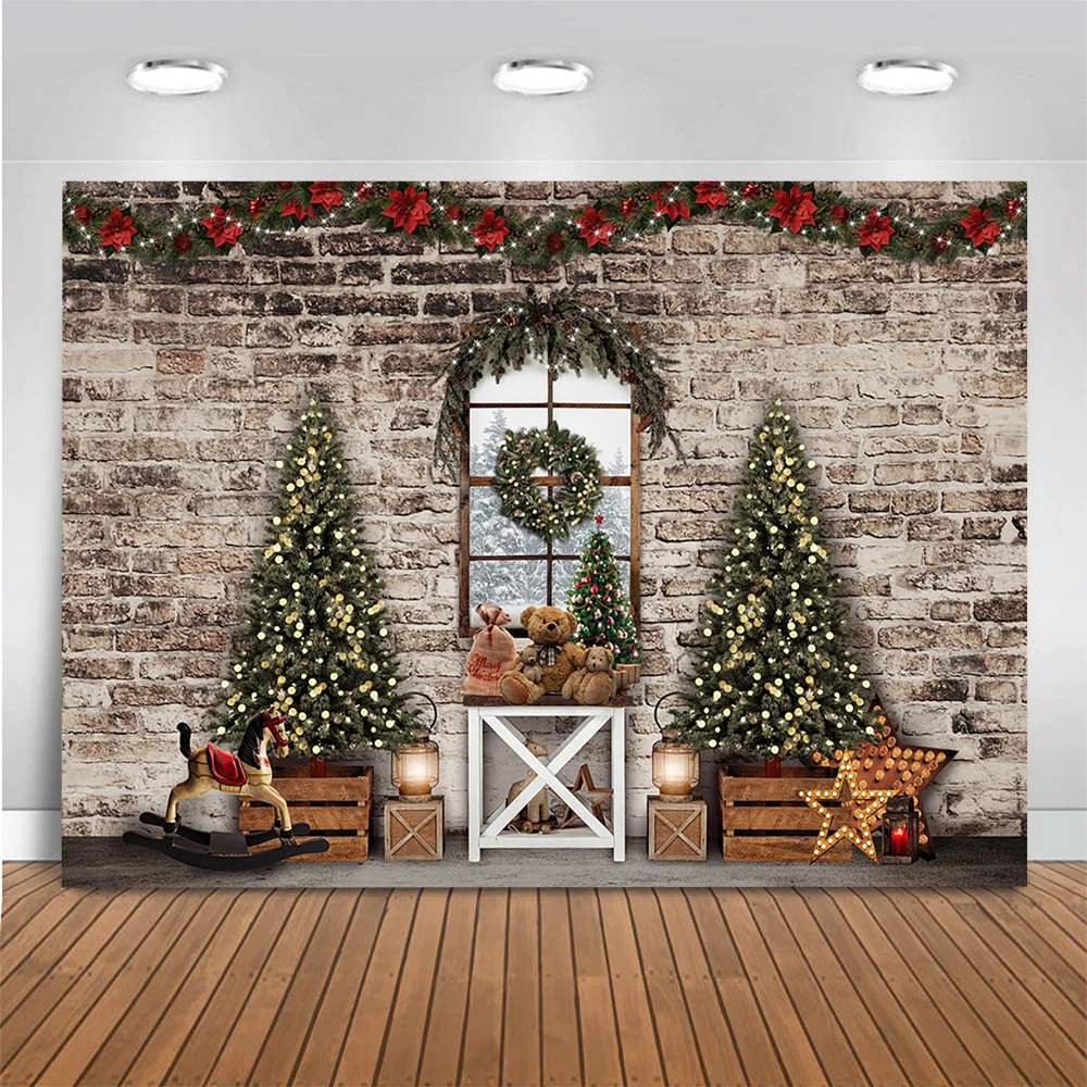 Фон для фотосъемки с изображением кирпичной стены и рождественской елки