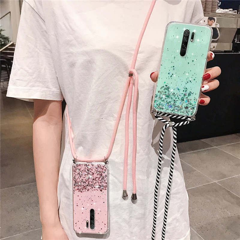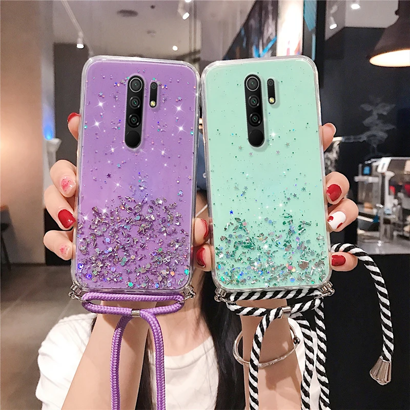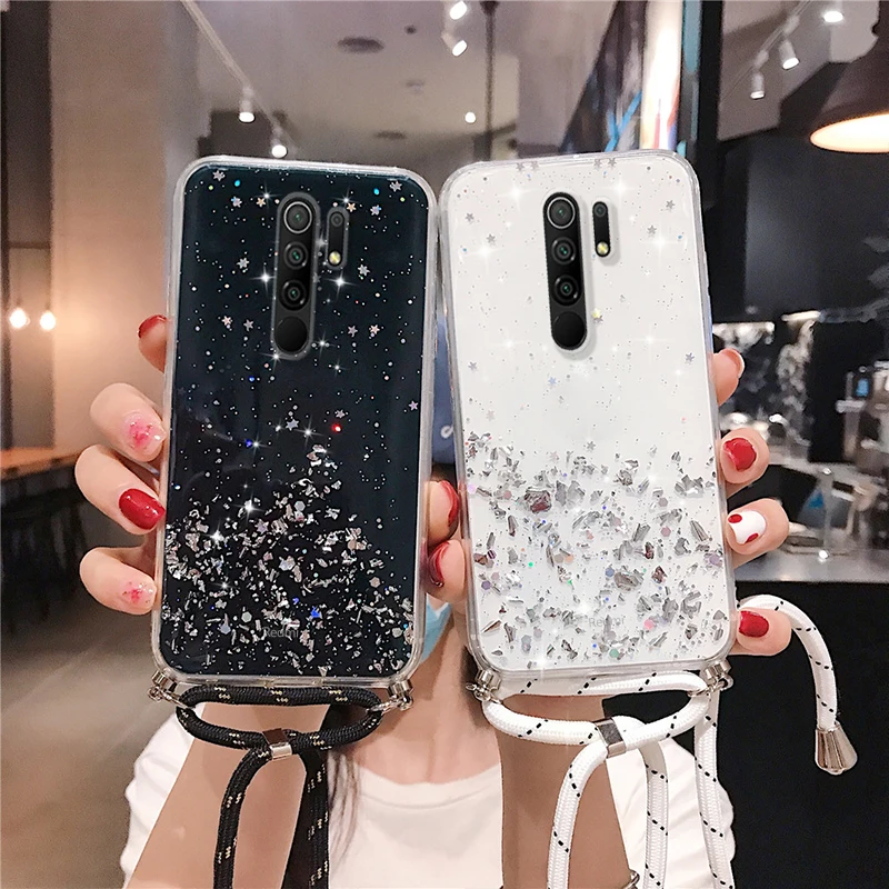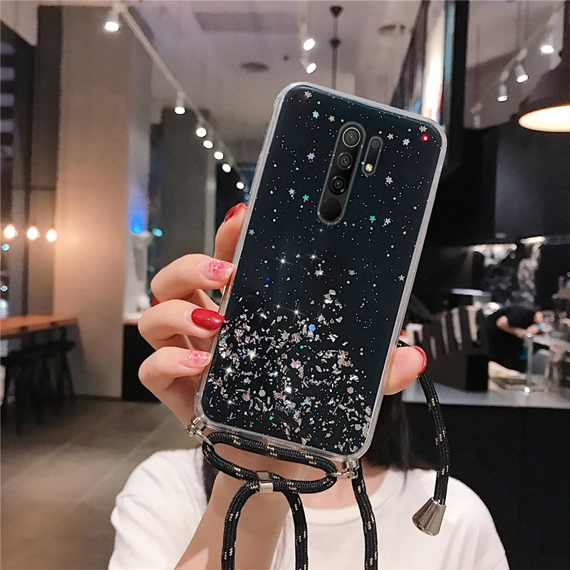 Прозрачный блестящий чехол со шнурком для mi Note 10 Pro, чехол с р...
