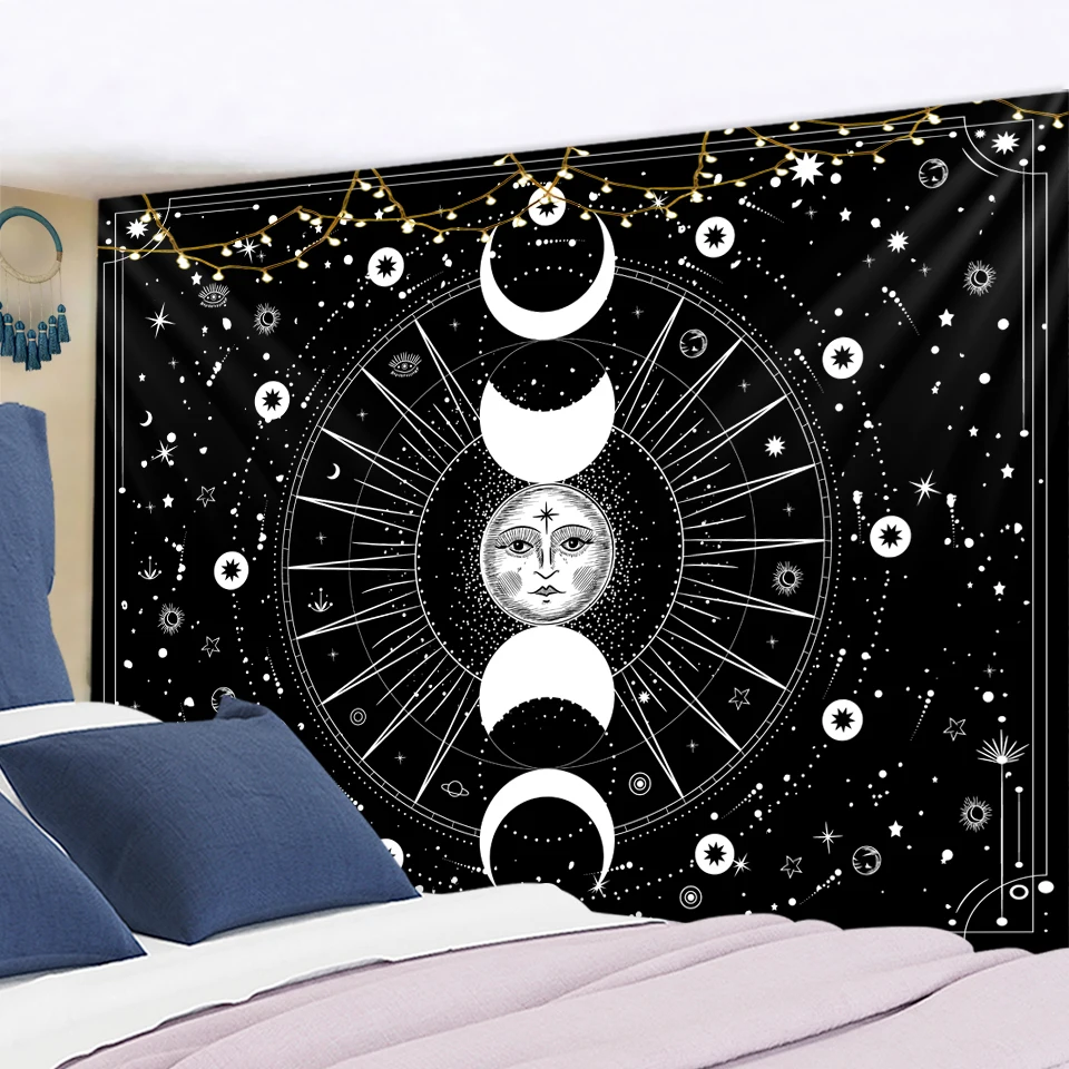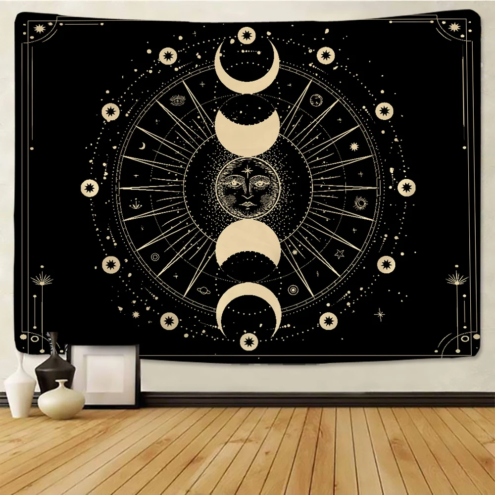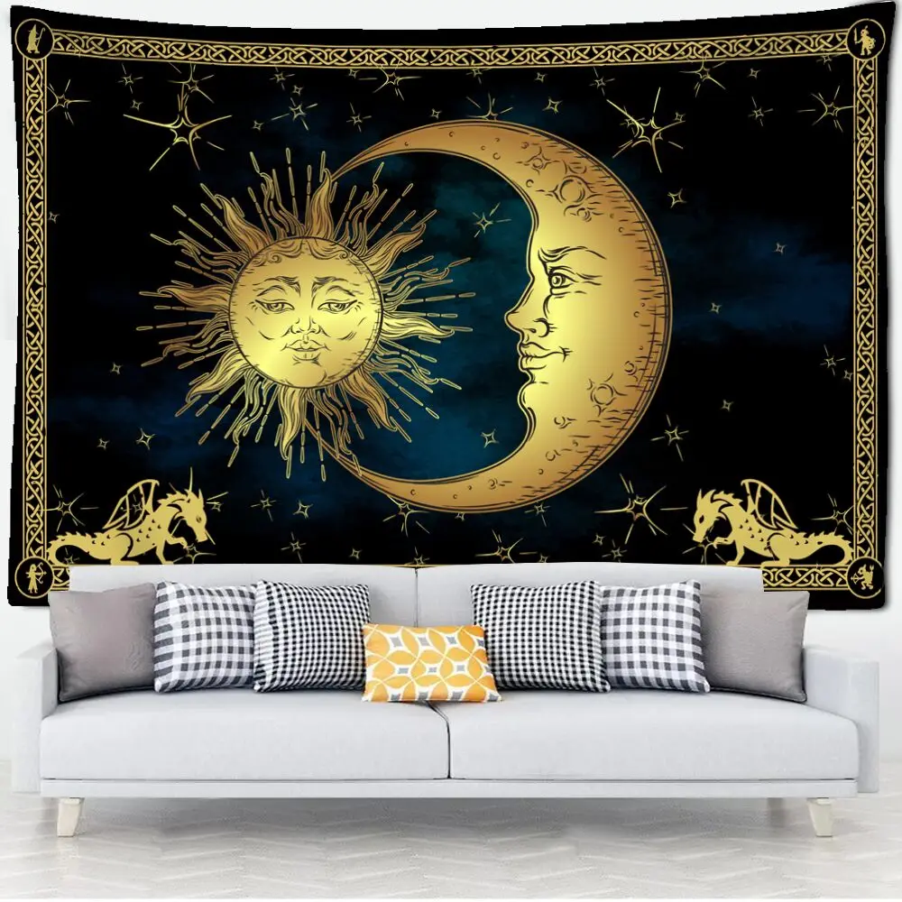 Золотое Солнце гобелен с Луной настенная подвеска индийская Мандала Бохо Печатный психоделический тапиз колдовство настенный гобелен из ткани