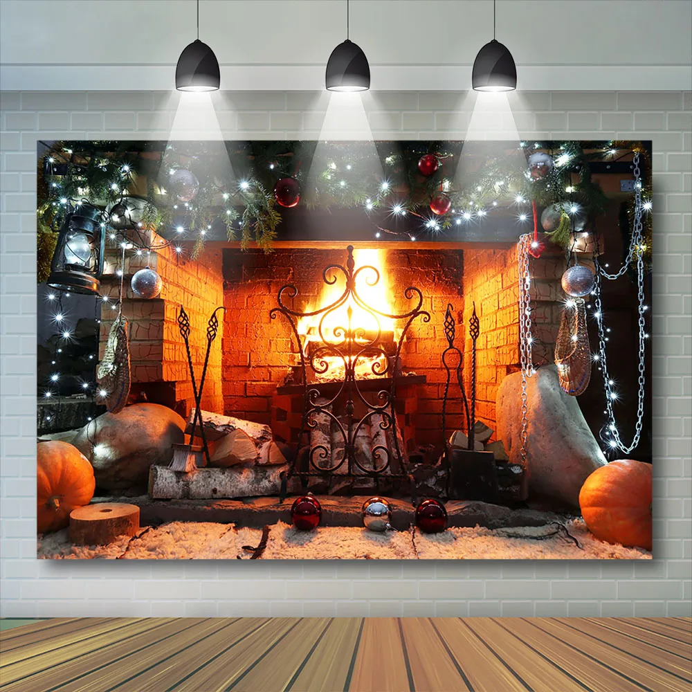 Фон для фотографирования детей с изображением рождественской стены камина в стиле ретро