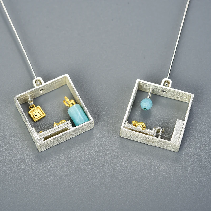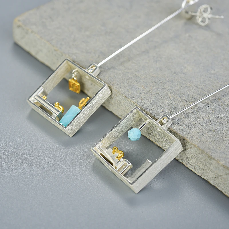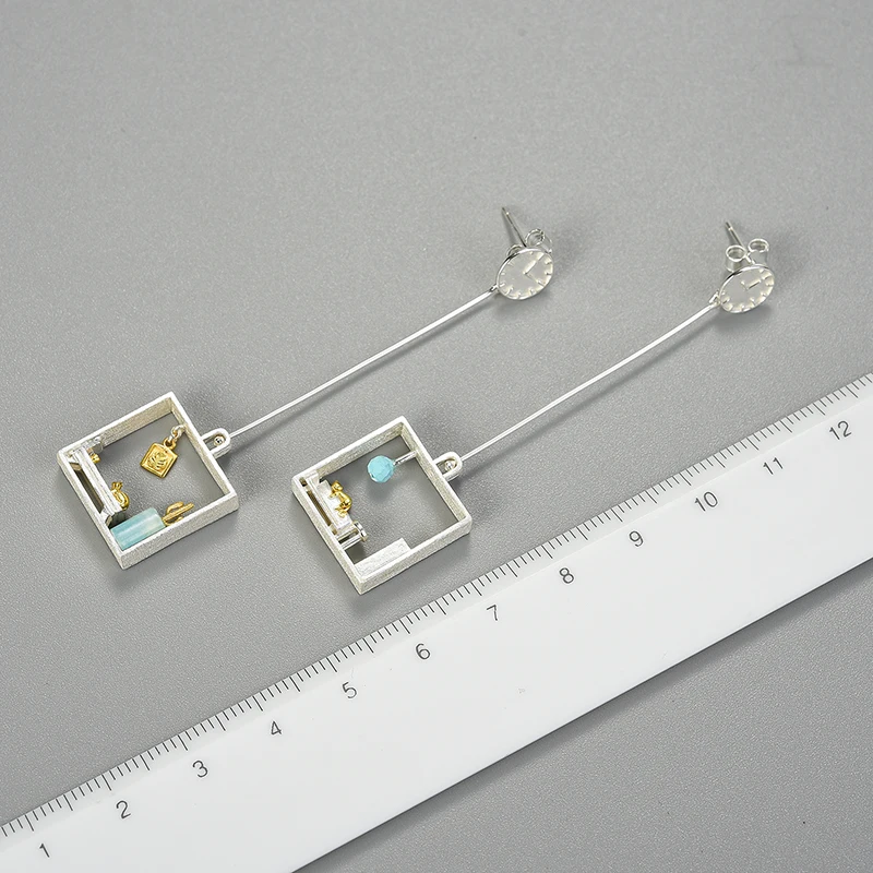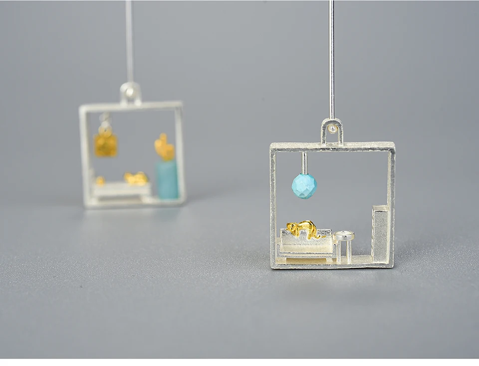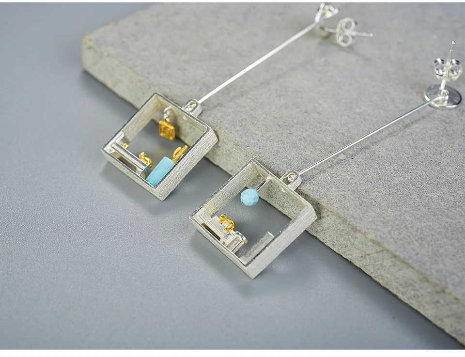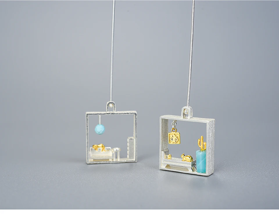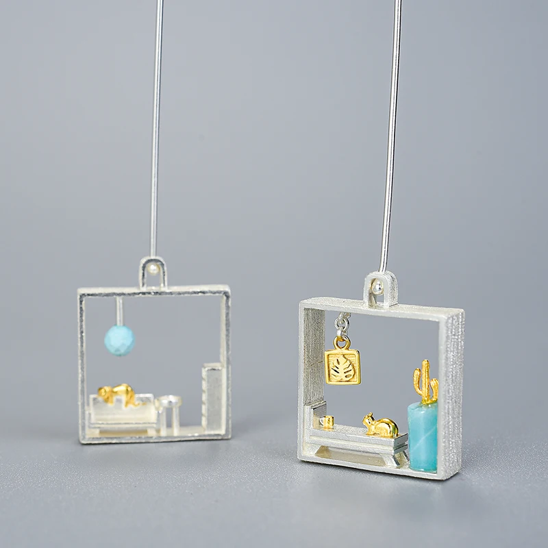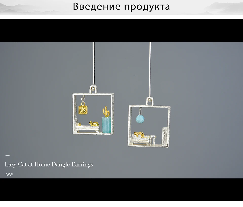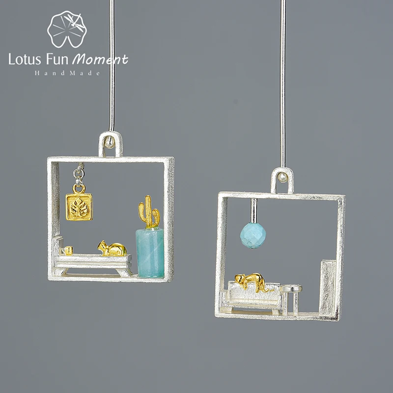 Женские серьги-подвески ленивый кот Lotus Fun, серьги из настоящего серебра 925 пробы ручного изготовления, изящные квадратные серьги большого размера