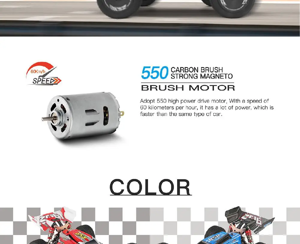 Модель высокоскоростного гоночного автомобиля Wltoys 144001 114 2,4G 4WD, батарея 60 кмч, 7,4 В, 2600 мАч