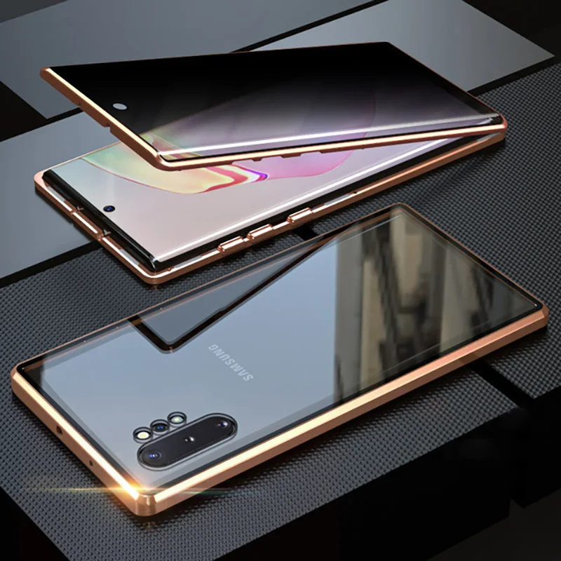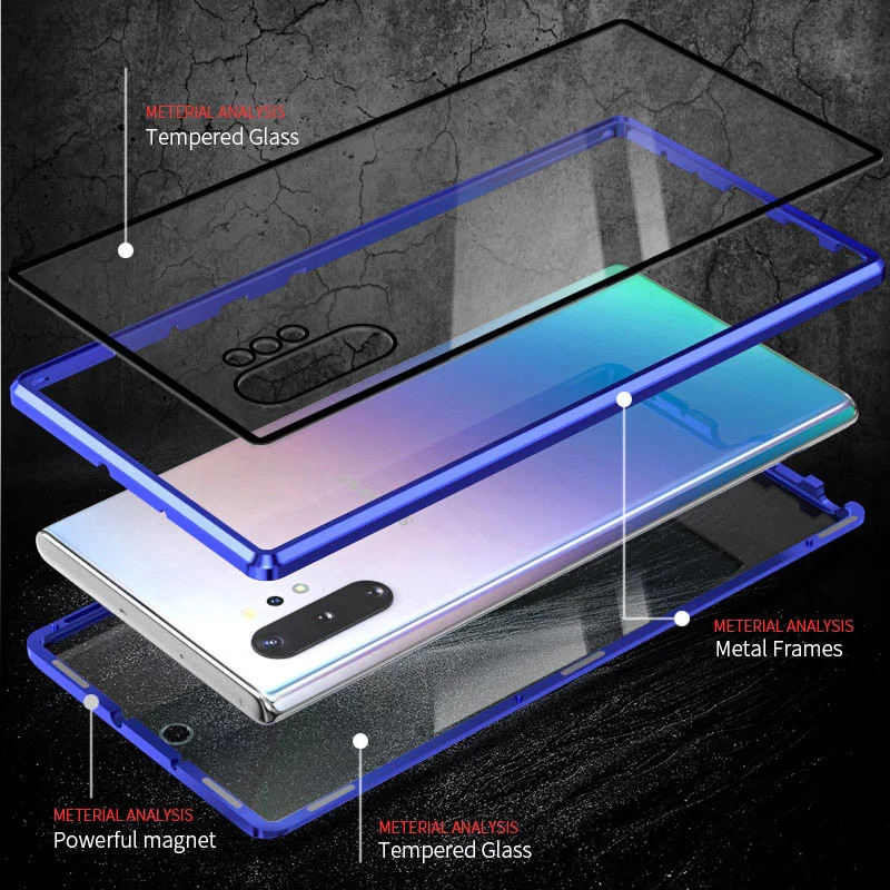 Магнитный металлический чехол из закаленного стекла 360 для Samsung Galaxy S20 S10 S9 S8 Plus Note 8 9 10 Plus A50 A70