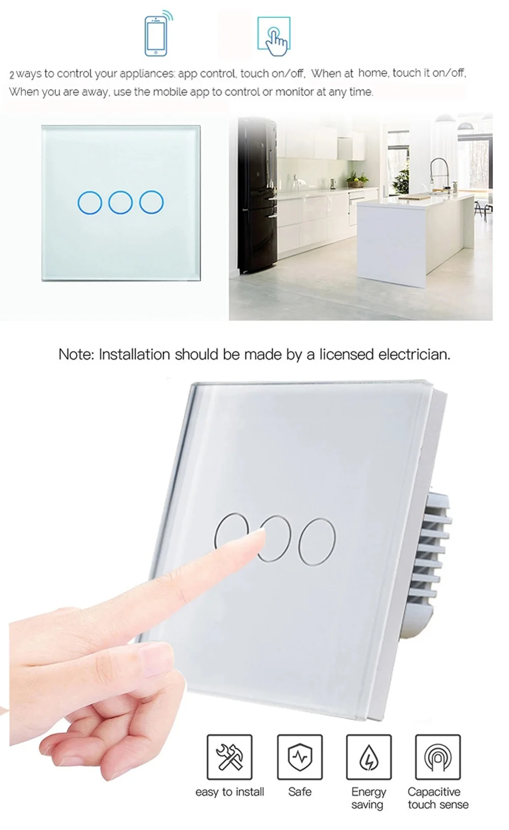 Умный выключатель Tuya Zigbee для умного дома, дистанционное управление через приложение, поддержка AlexaGoogle HomeSiri, сенсорный настенный выключатель европейского стандарта