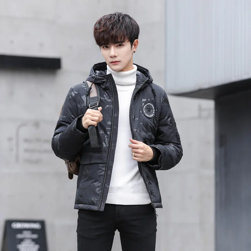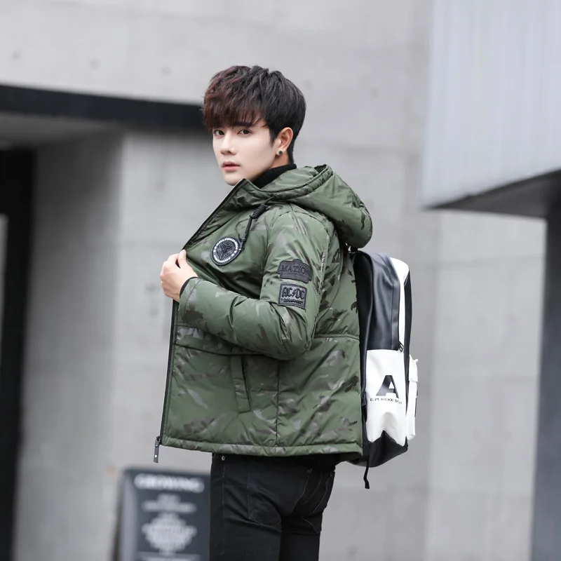 Куртка мужская камуфляжная на утином пуху, утепленная верхняя одежда, пальто с капюшоном, повседневный теплый ветрозащитный пуховик