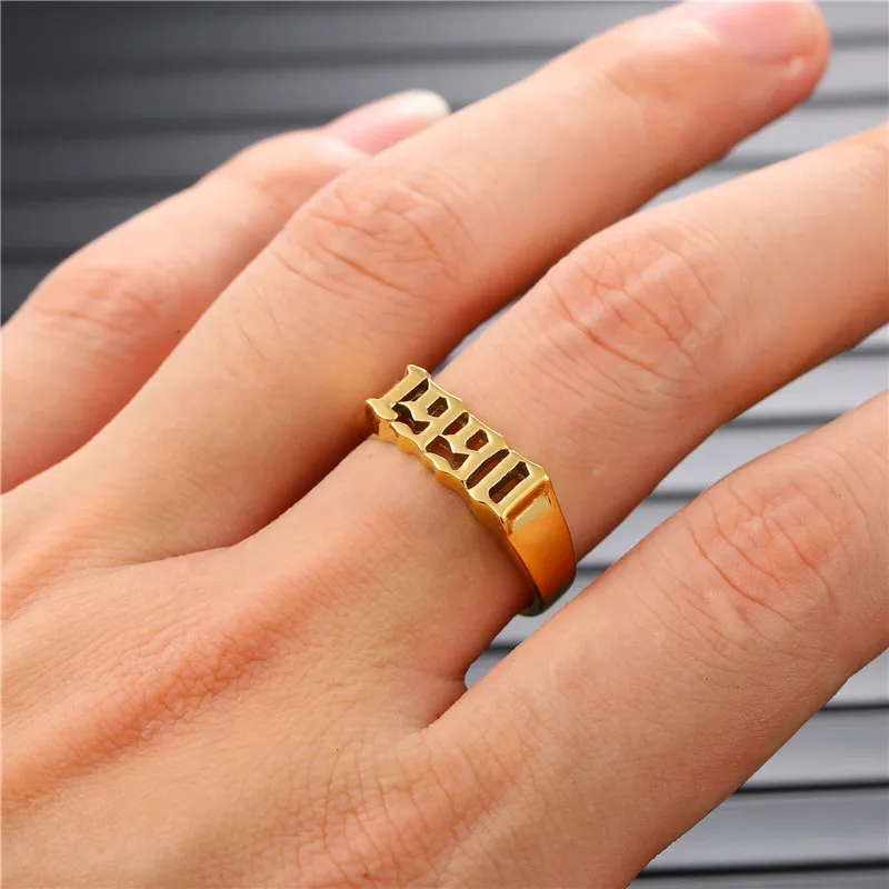 Старый английский шрифт, кольцо из нержавеющей стали с Золотое кольцо для женщин и мужчин, в готическом стиле, специальные год рождения количество колец одежда для свадьбы, дня рождения подарок