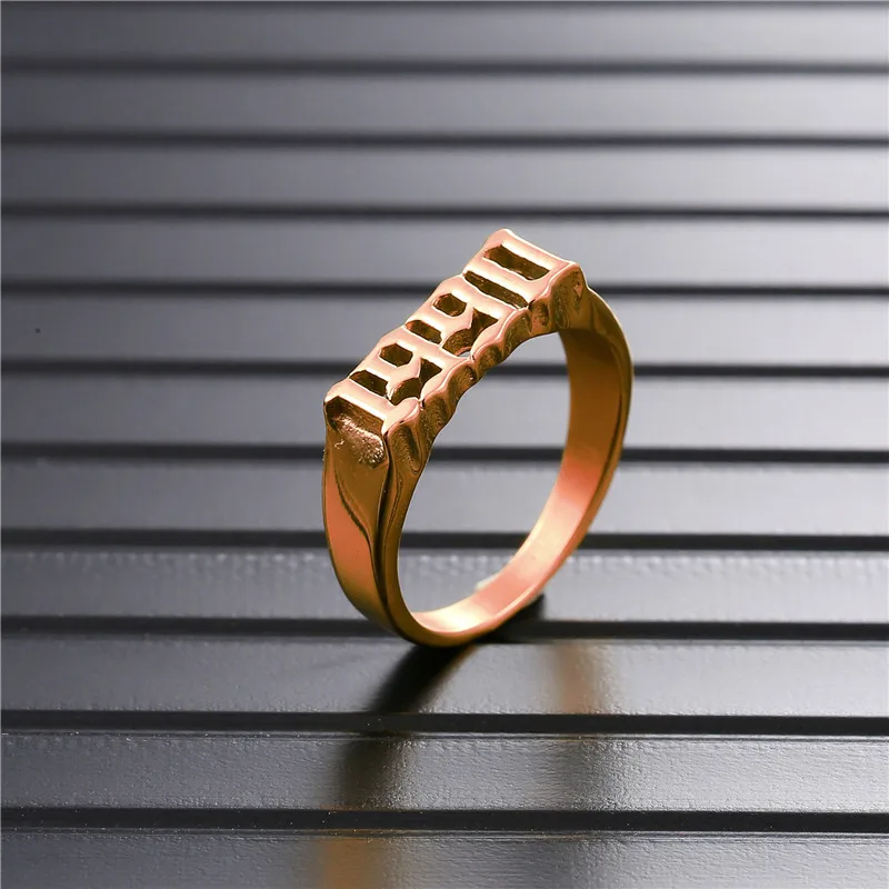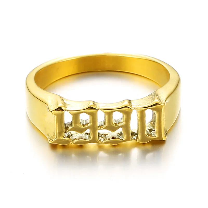 Старинный английский шрифт кольцо из нержавеющей стали золотое кольцо для женщин и мужчин готическое кольцо для особых случаев рождения год номер кольца Свадьба День рождения подарок