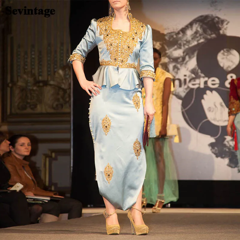 Вечернее атласное платье-Русалка Sevintage, с золотыми аппликациями, кружевное, с полурукавами, для выпускного вечера, размера плюс, 2021