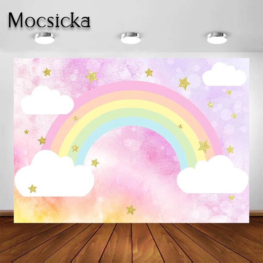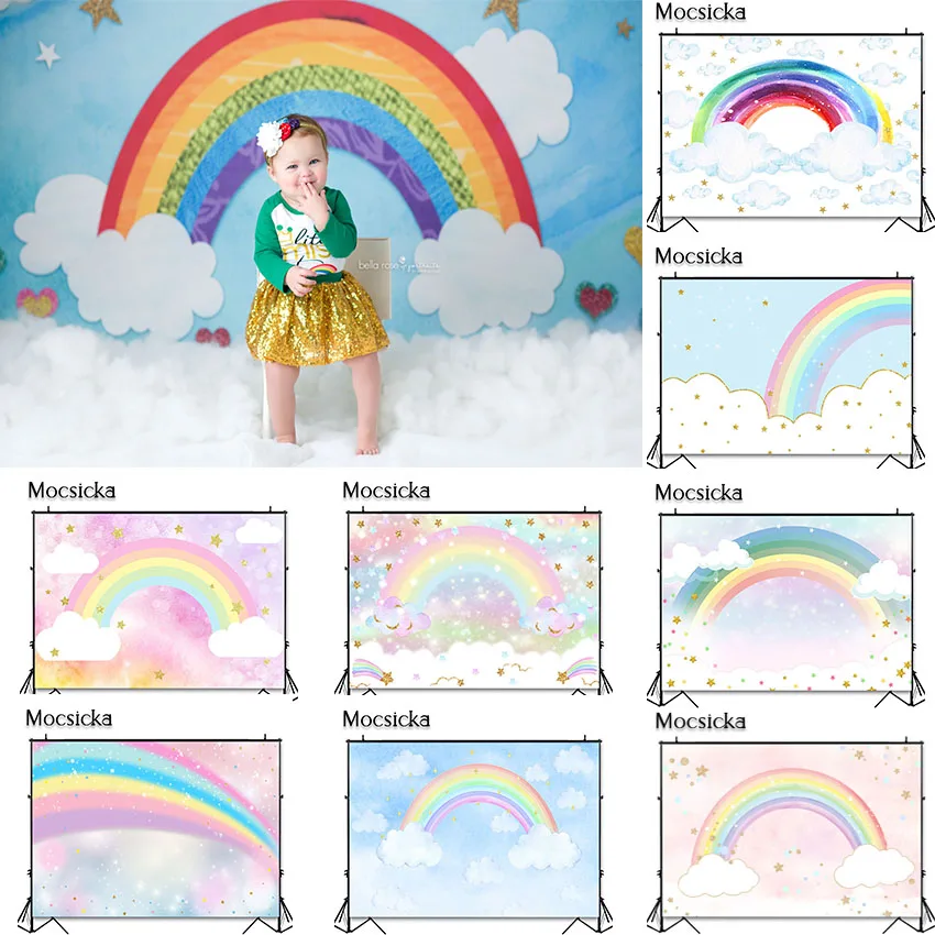 Mocsicka фон для фотосъемки новорожденных Радуга с блестками Звезда голубое небо облака ребенок портрет фотография день рождения