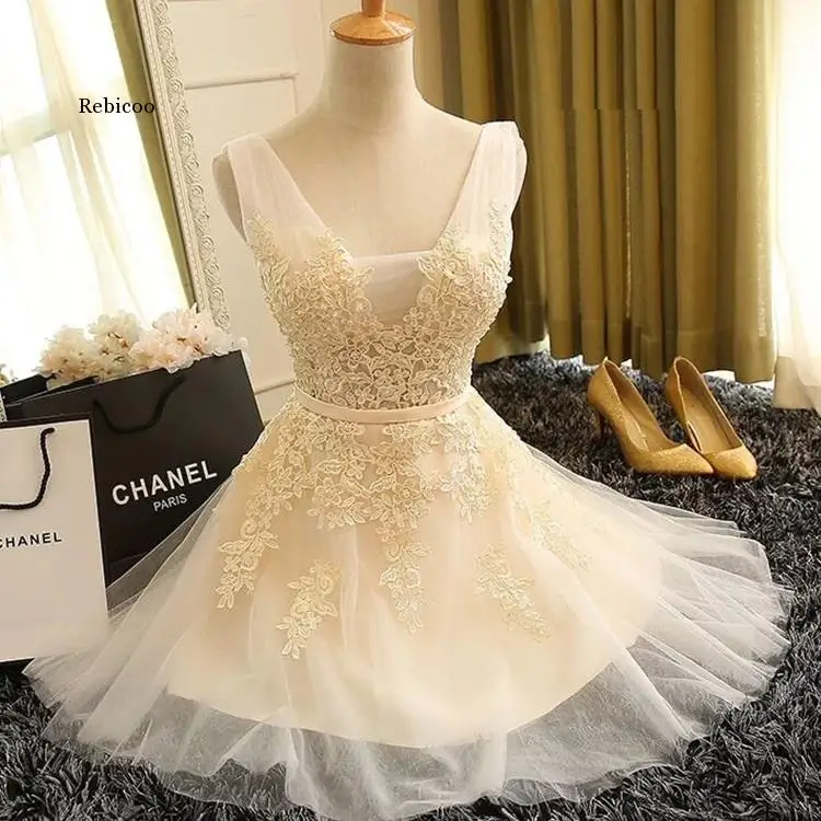 Женское короткое вечервечерние чное платье, кружевное короткое платье с V-образным вырезом, ручной вышивкой, с бисером, для выпускного вечера, свадьбы, вечеринки, размера плюс