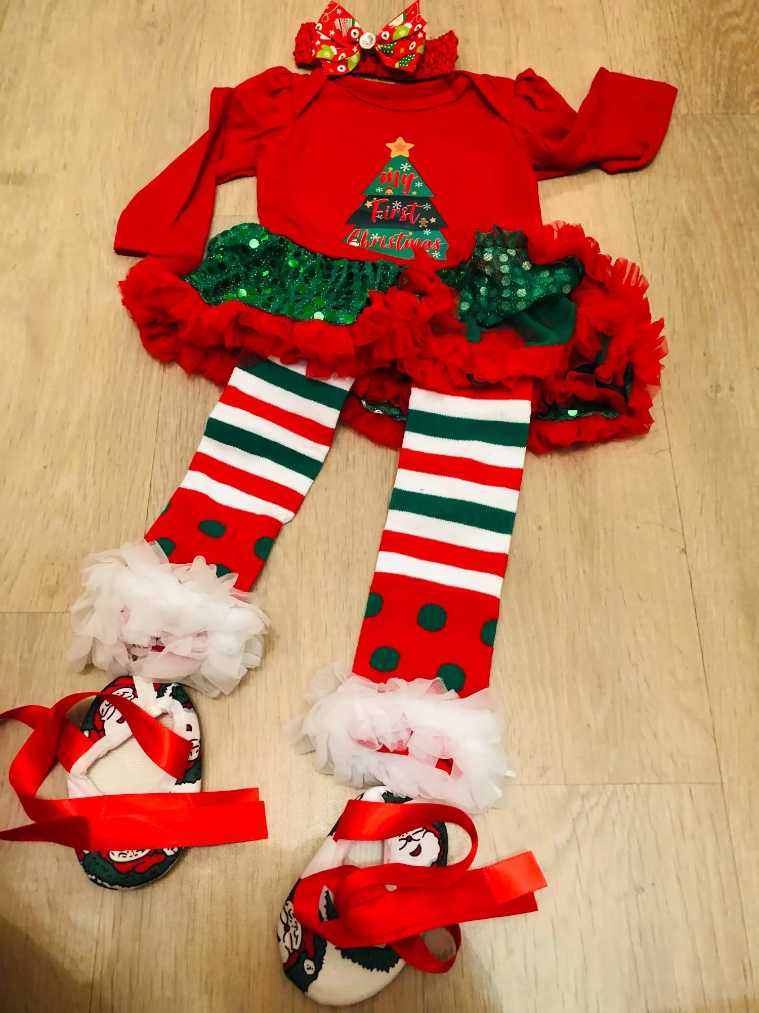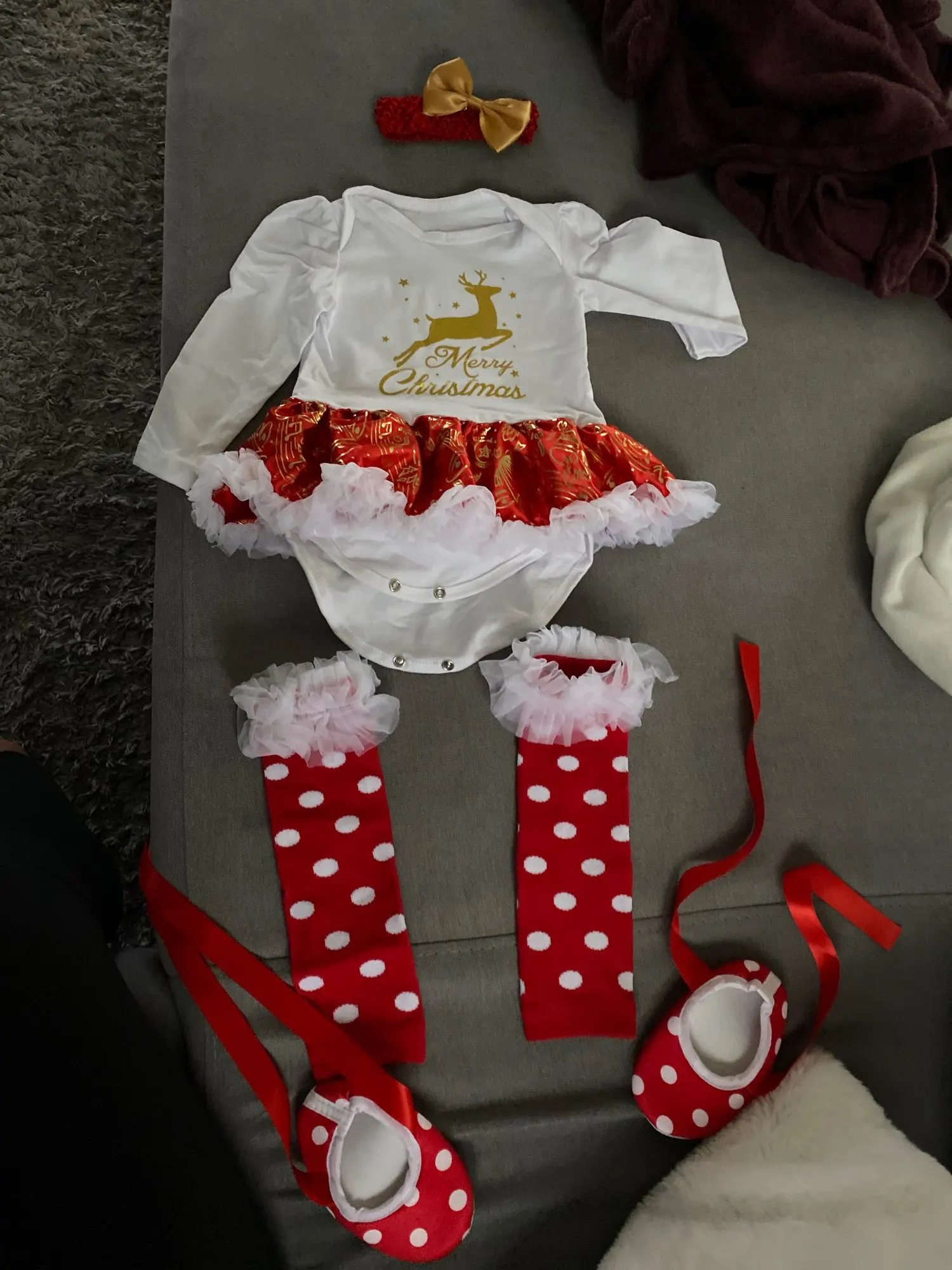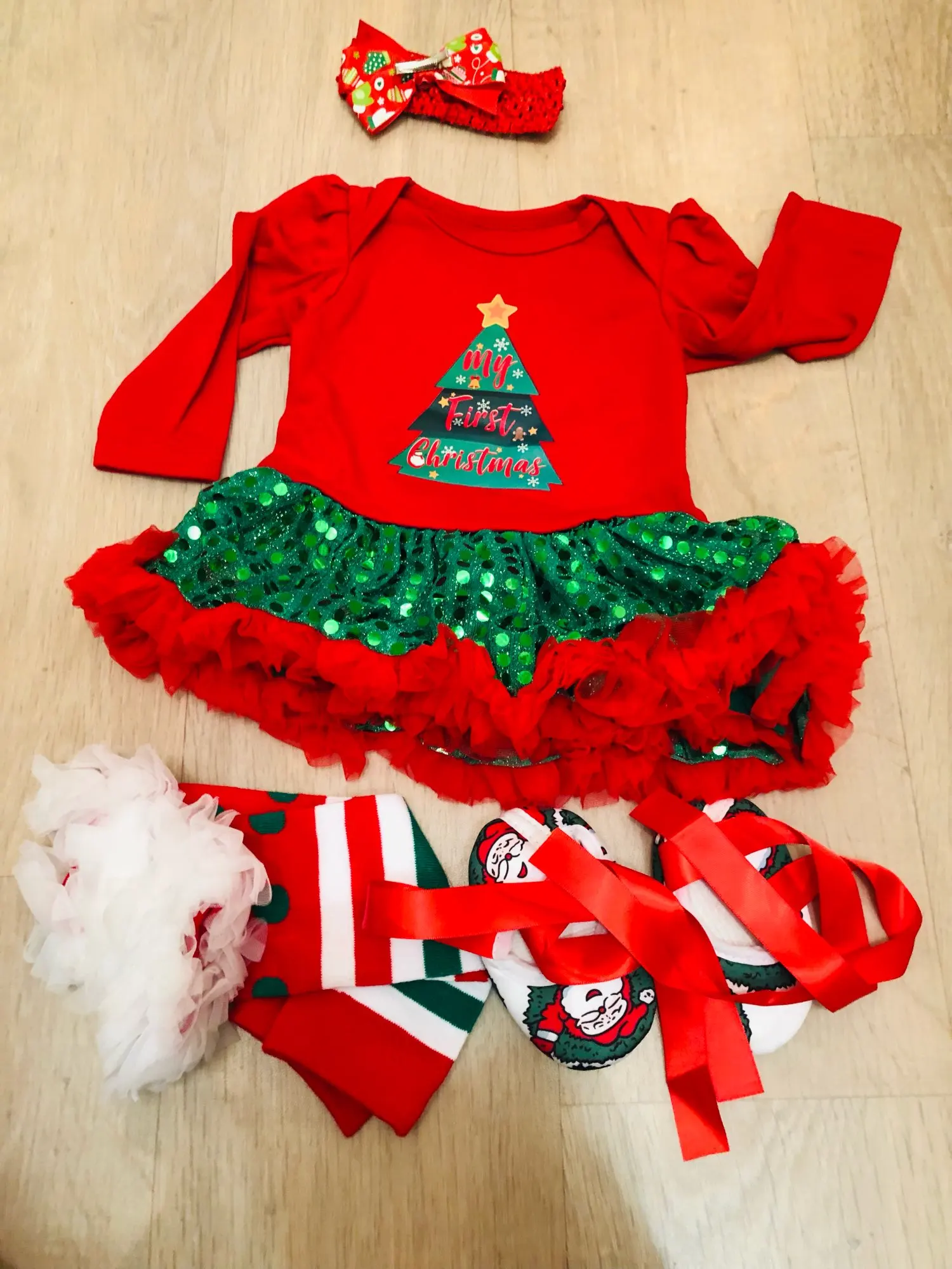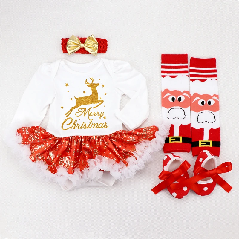 Рождественская Одежда для новорожденных девочек, мой первый Рождественский костюм Roupa, детский комбинезон-пачка, платье для девочек, кружевной комплект одежды из 4 предметов