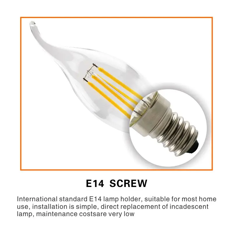 E14 светодиодный нити C35 лампа C35L Диммируемый стеклянный лампы в...