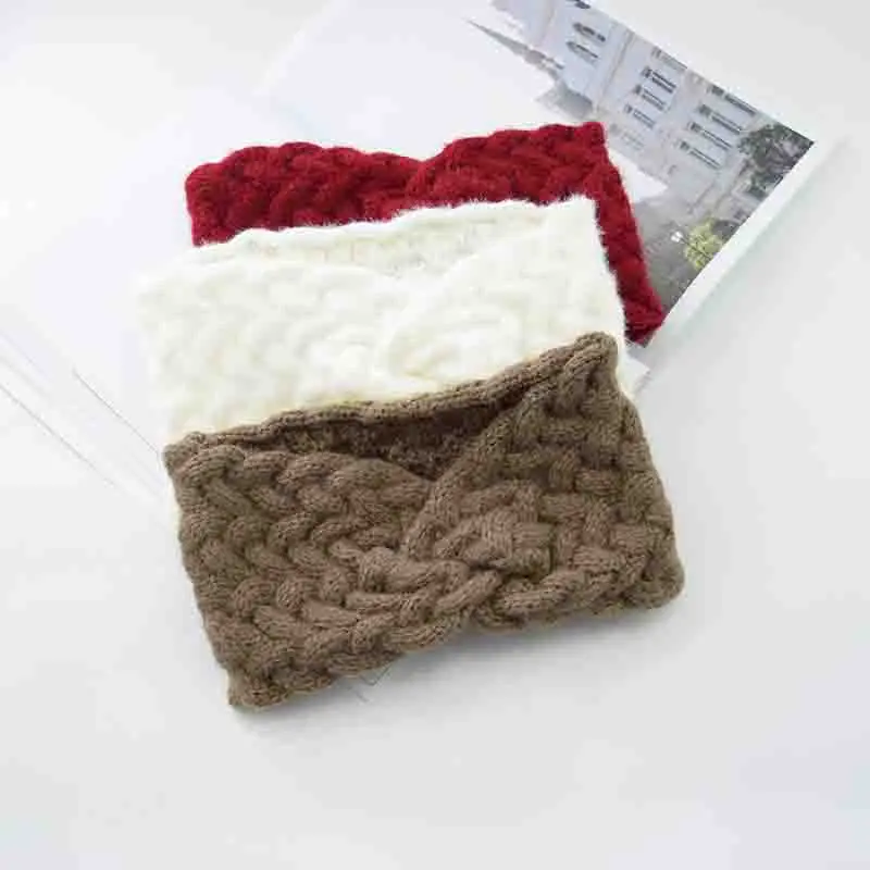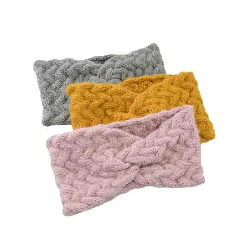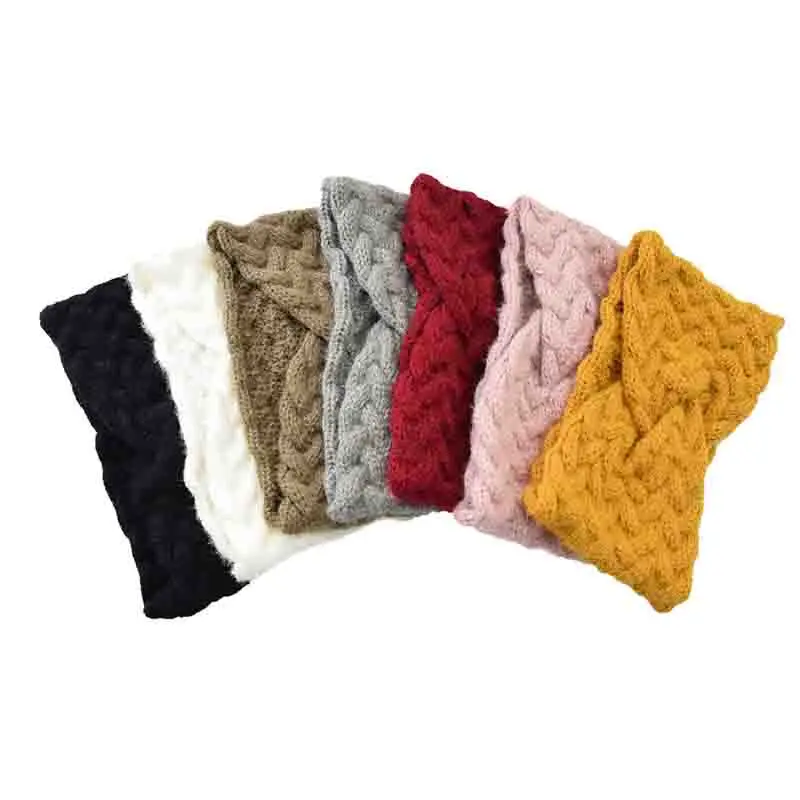 Повязка на голову женская шерстяная, зимняя, теплая, однотонная