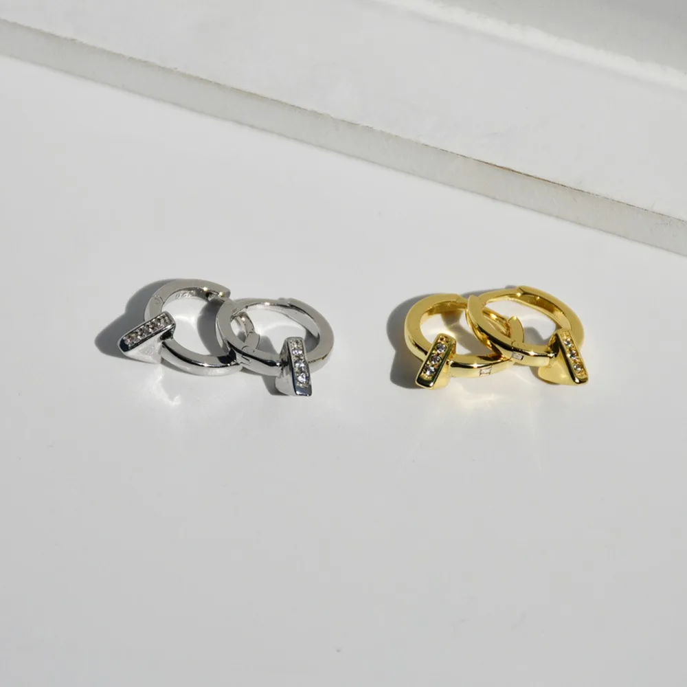 Серьги из стерлингового серебра 925 пробы, модные, в стиле панк, геометрические, треугольные, кольца для ушей, круглые, круглые, для ушей, для ногтей, диких девушек, ювелирные изделия для ушей