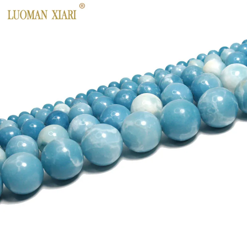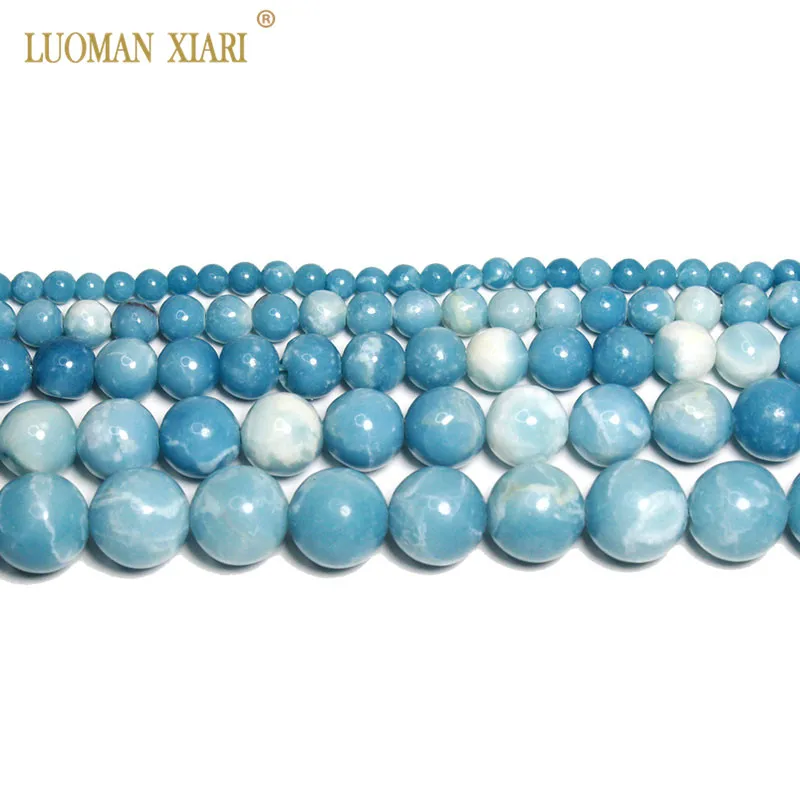 Тонкий AAA 100% натуральный голубой китайский Ларимар круглый натуральный камень бусины для самостоятельного изготовления ювелирных изделий браслет ожерелье 4681012 мм