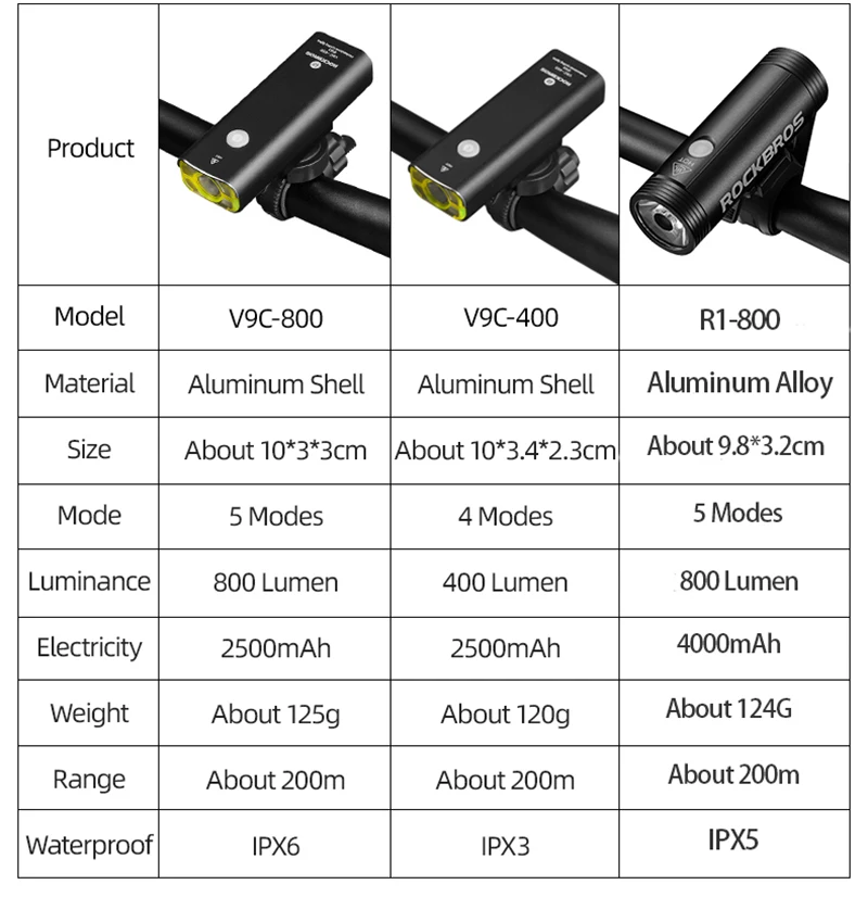 Велосипедный фонарь на руль, 800 лм, водонепроницаемый, перезаряжаемый