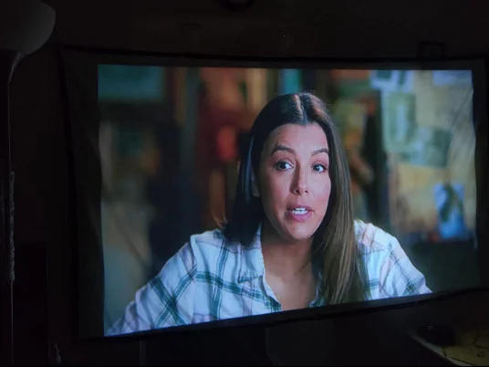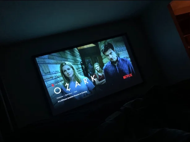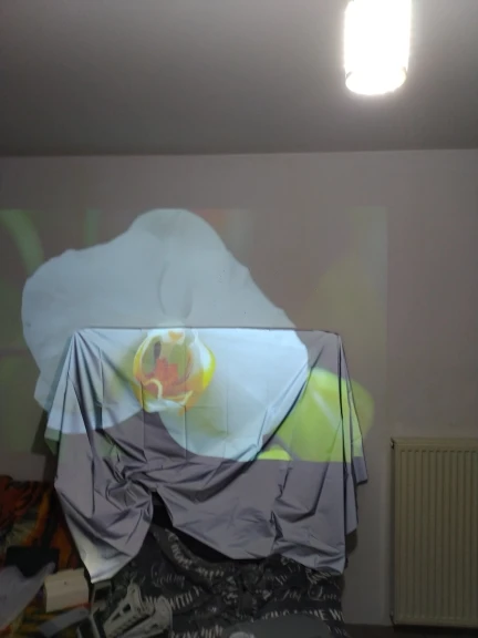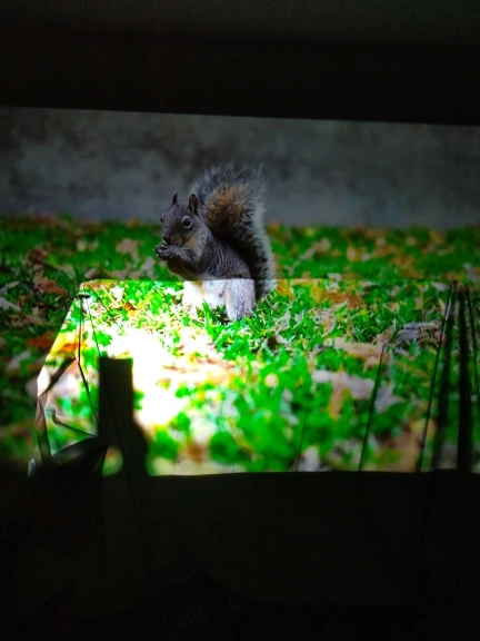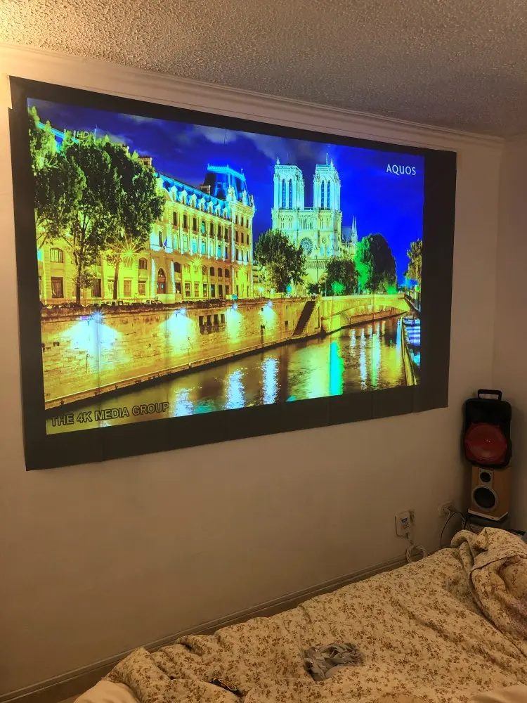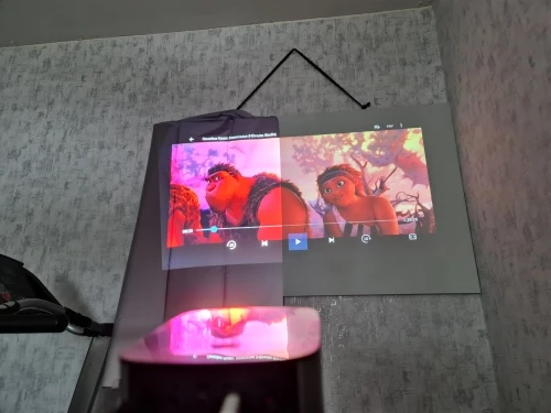 Я хотел использовать его с проектором pico, но автоматический фокус имеет трудности, потому что поверхность слишком отражающая. Но экран прекрасно работает с классическим видеопроектором.