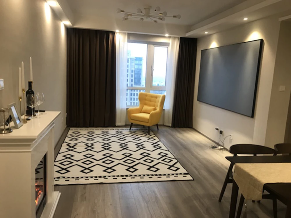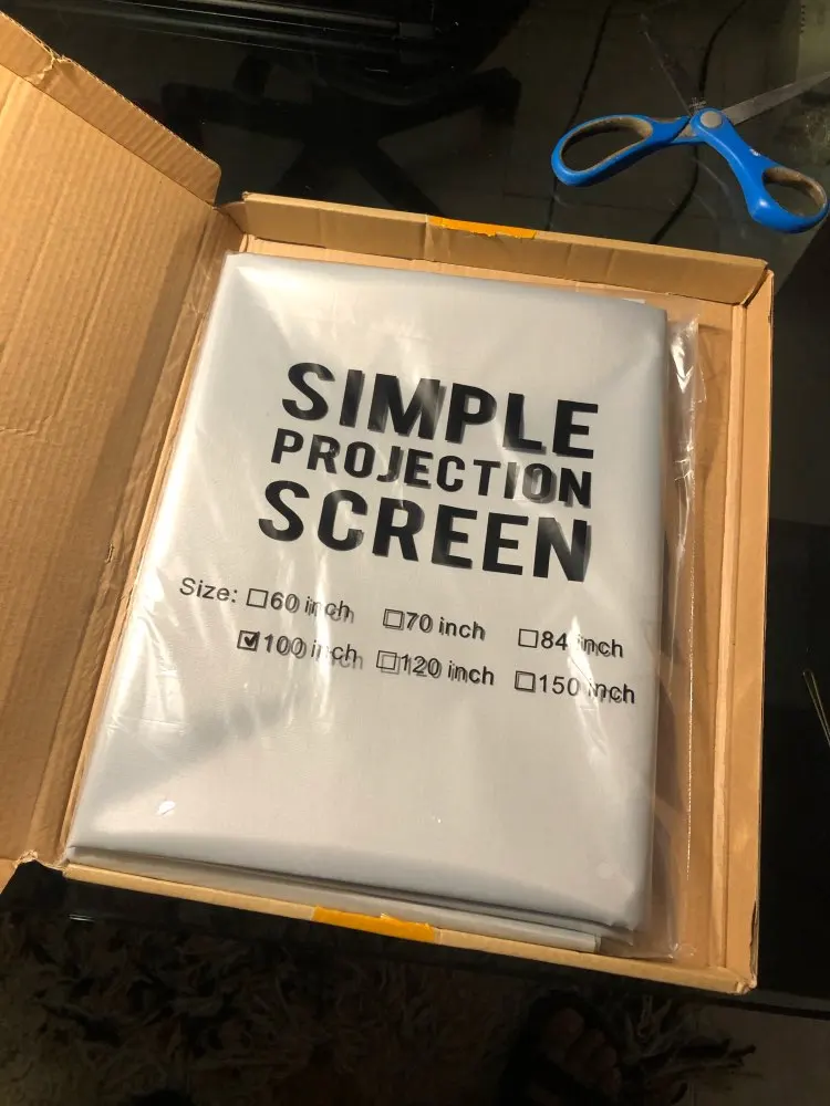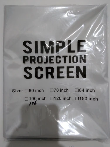 Мы раньше использовали ту же стену, что и экран, но разница в использовании экрана отличная. Подходит для 120 дюймов, более чем достаточно для нас. Он был прост в установке, он поставляется с некоторыми velcros, которые могут быть прикреплены к стене. Если он хорошо растягивается,