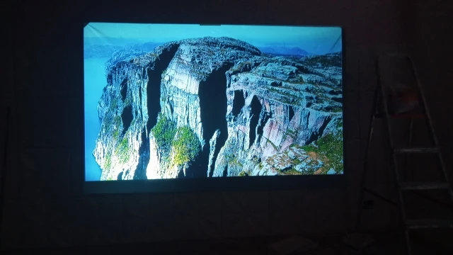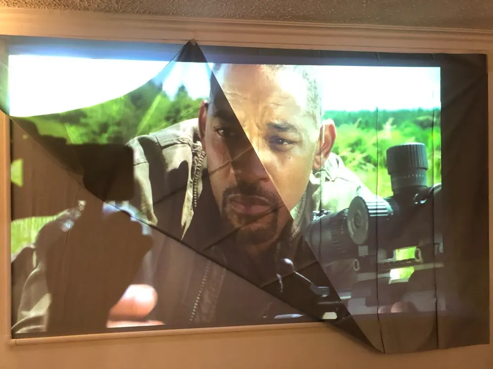 Ficou uma imagem muito boa. Ainda nao testei de dia, mas a noite tudo perfeito. Veio com umas manchas no canto, mas nao interferiu na imagem projetada. Estou satisfeita com a tela.