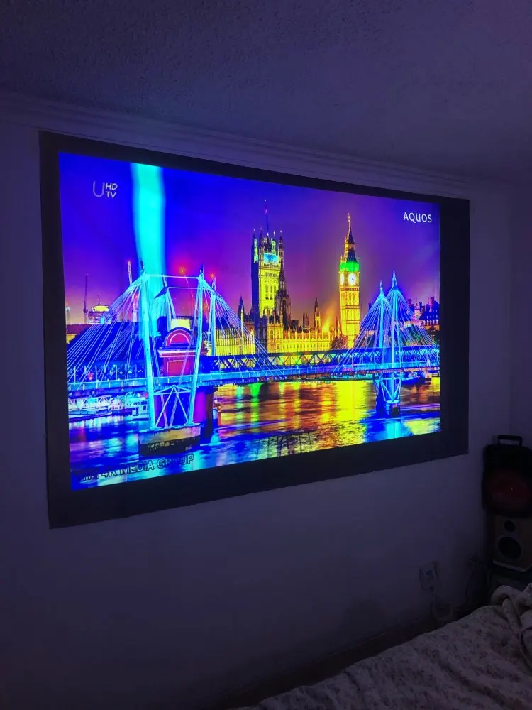 Отличный экран. Необходимо использовать мини-проектор. Вообразите, что товар будет острым и ярким. При использовании этого экрана важно позиционирование проектора. Проектор должен быть на уровне глаз для лучшей проекции. Просмотр в дневное освещение также улучшился. Отличное улучшение для стены или белого экрана. Покупайте уверенно.