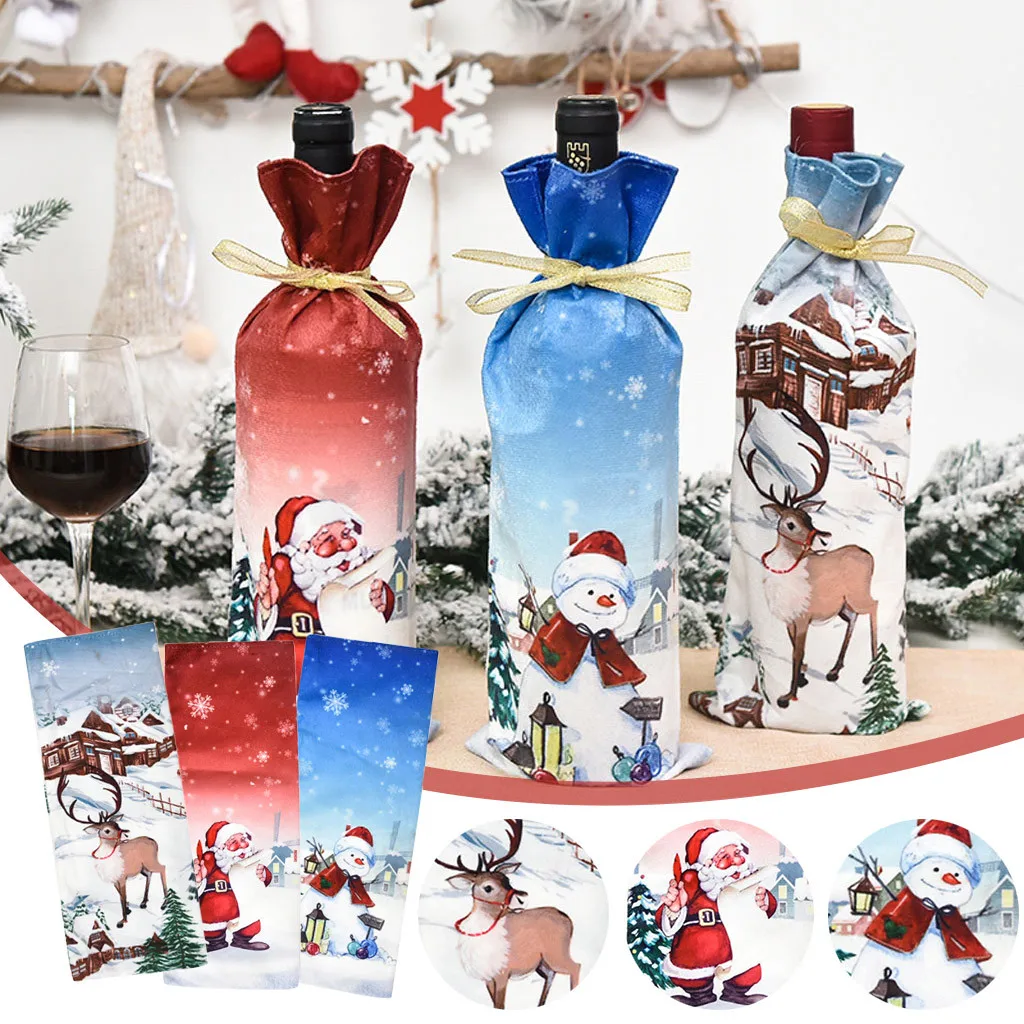 Рождественский комплект для украшения винной бутылки, чехол для бут...
