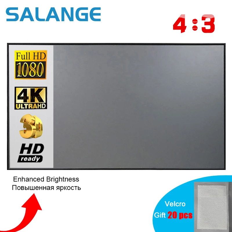Экран для проектора Salange 4:3, 60, 72, 84, 100 дюймов, для дома, улицы, офиса, портативный видеопроектор 3D, 4K, 1080P