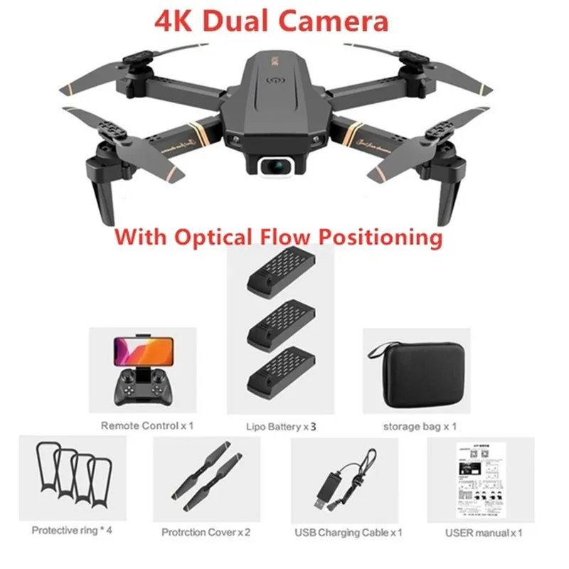 Квадрокоптер, двойная камера 4k, управление скоростью фото, функция Следуй за мной, VS E88 S137
