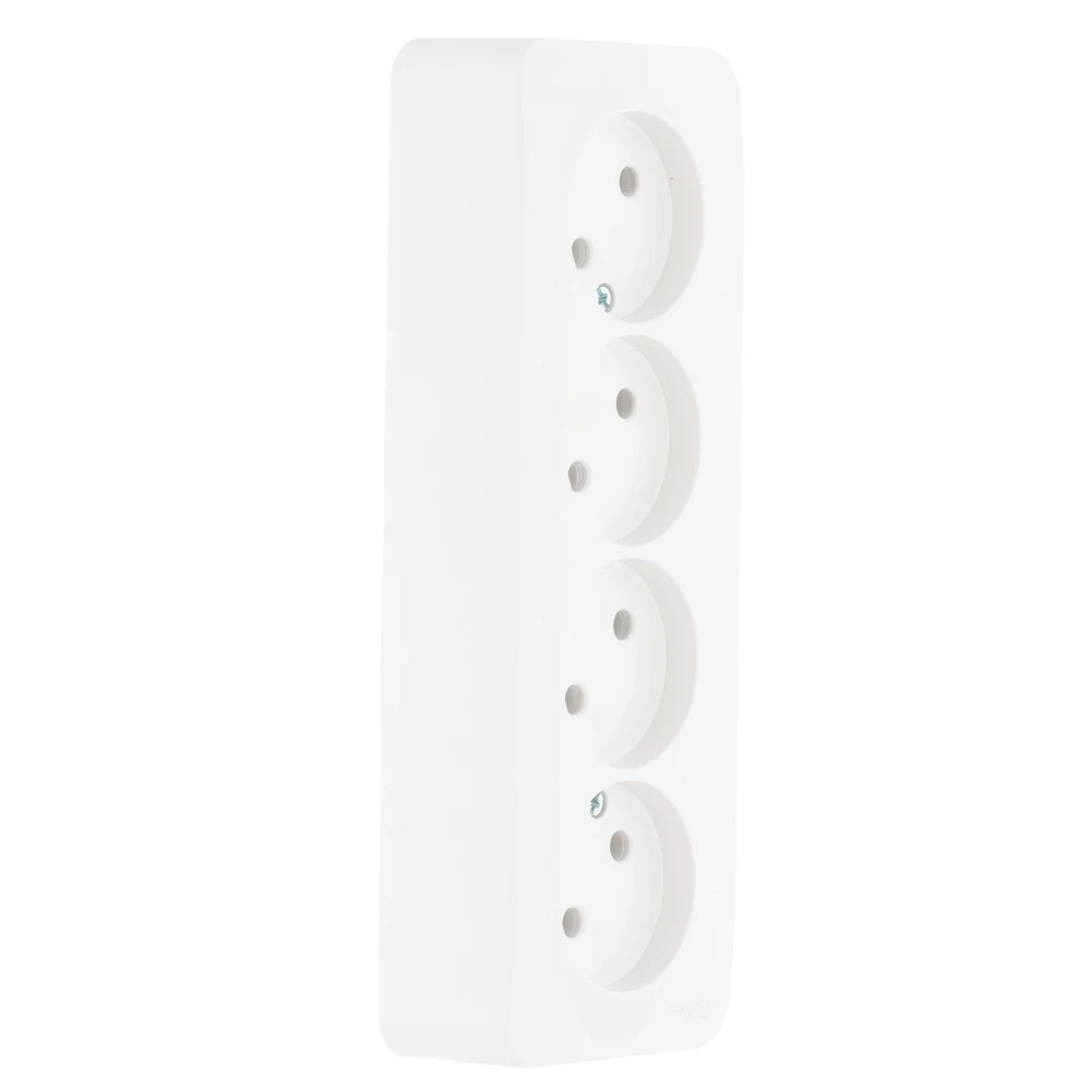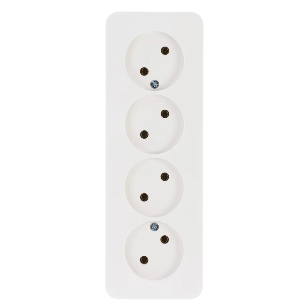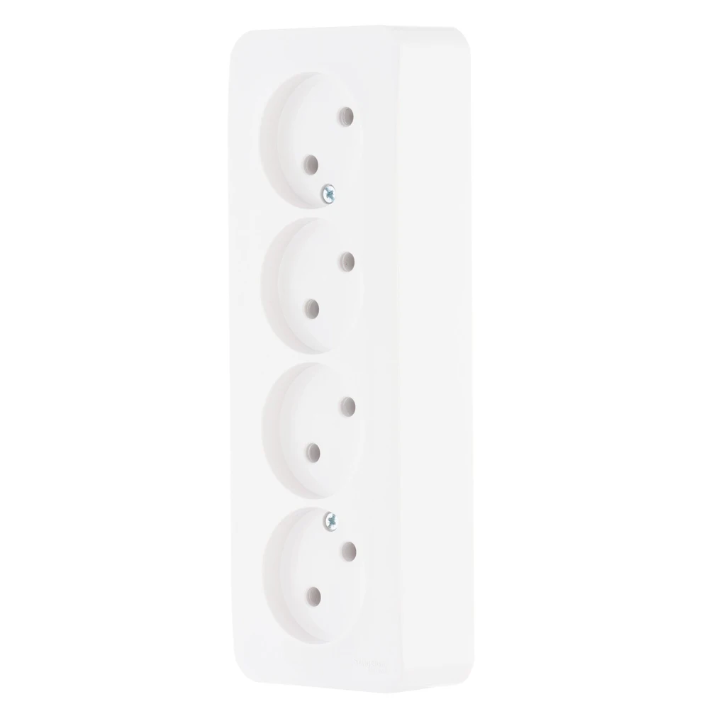 Розетка Schneider Electric BLANCA (белый, открытой установки) четырехместная, без шторок и заземления, с изолирующей пластиной предназначена для сетей до 250В, на ток до 16А. четырехместная розетка позволяет подключить четыре устройства в одном месте. Она