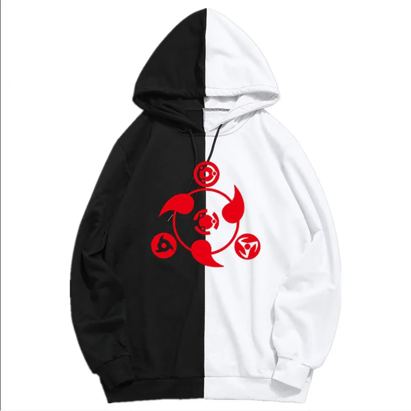 Толстовка с капюшоном, двухцветная, с принтом Шаринган, в стиле Харадзюку
