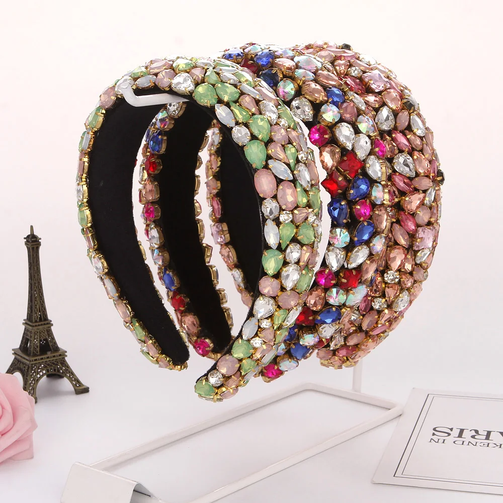Женские ободки с бриллиантами ручной работы в стиле барокко, Роскошные блестящие мягкие повязки для волос, стразы, повязка на голову, модные аксессуары для волос для женщин