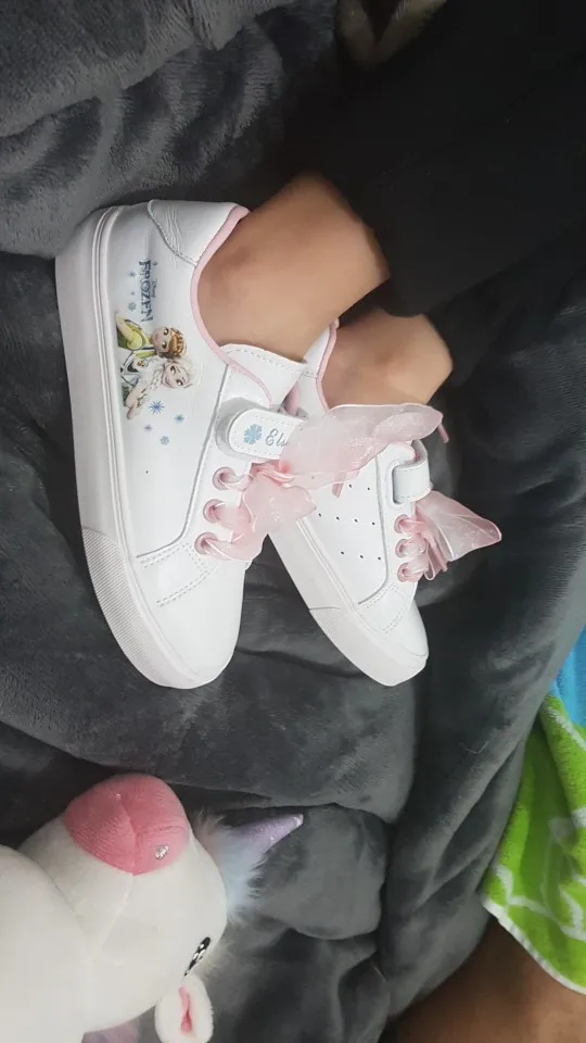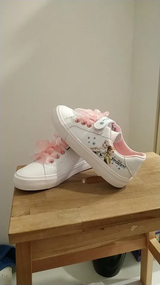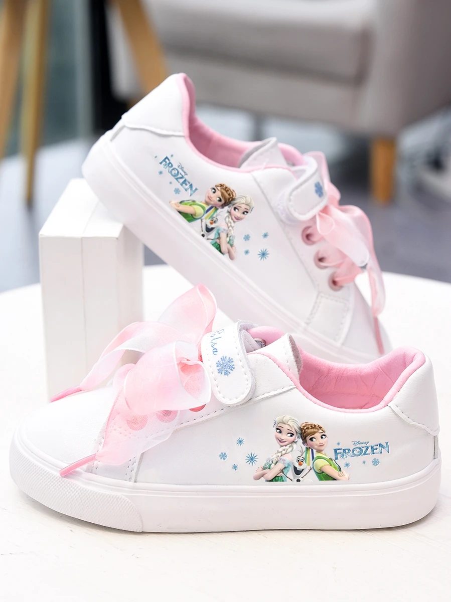 Парусиновые туфли Disney для девочек Холодное сердце с белым бантом, нескользящие спортивные повседневные туфли на мягкой подошве для девочек, подарок