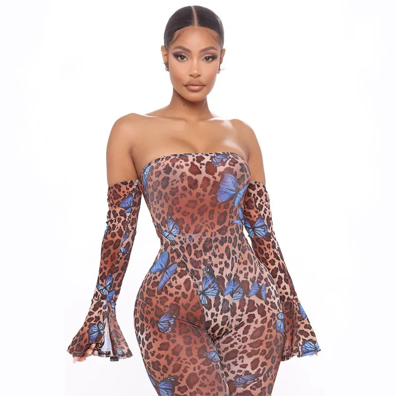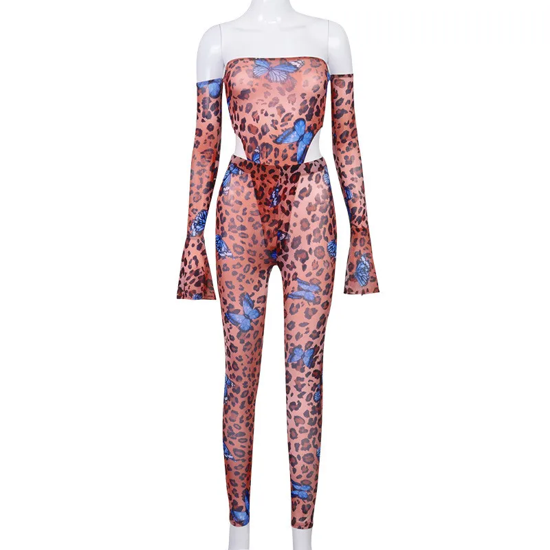 Женский леопардовый комбинезон Hugcitar, леопардовый комбинезон с длинными рукавами и принтом бабочки, осенний спортивный костюм из 2 предметов, 2020