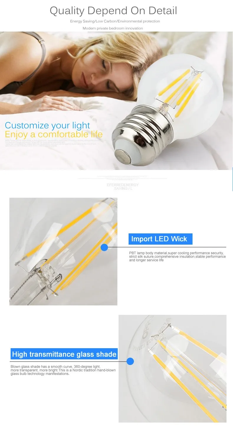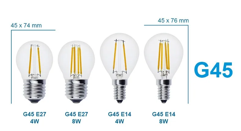 Светодиодный ная лампа накаливания E27 G45, сменные стеклянные LED ...