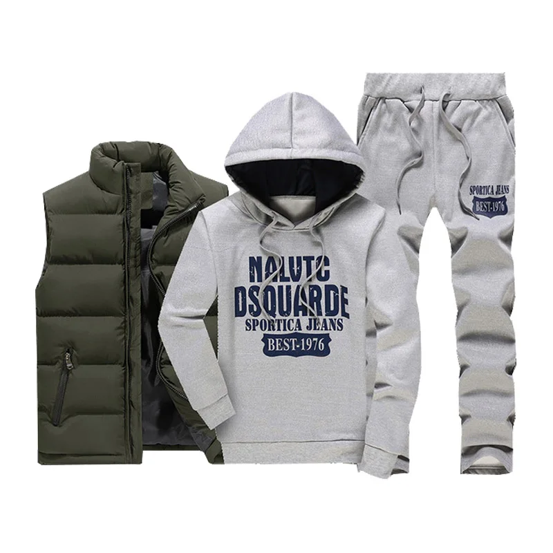 Костюм спортивный Мужской флисовый из 3 предметов, толстый, теплый, спортивный, зимний, 2021