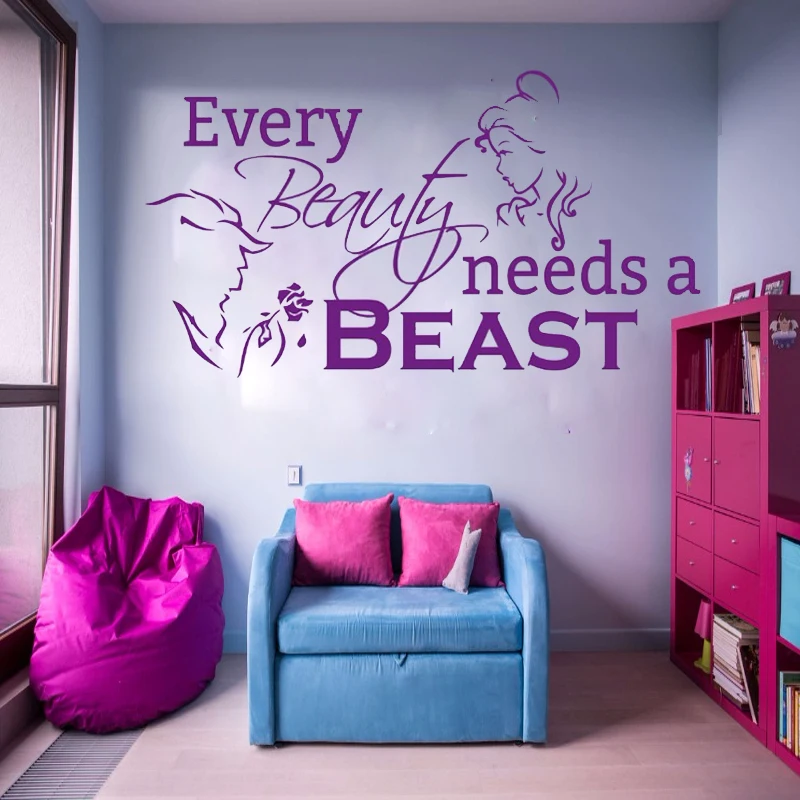 Наклейка на стену в детскую комнату, красивая и чудовище, виниловая фотонаклейка, романтический домашний декор, художественные обои для девочек, спальни, 4331