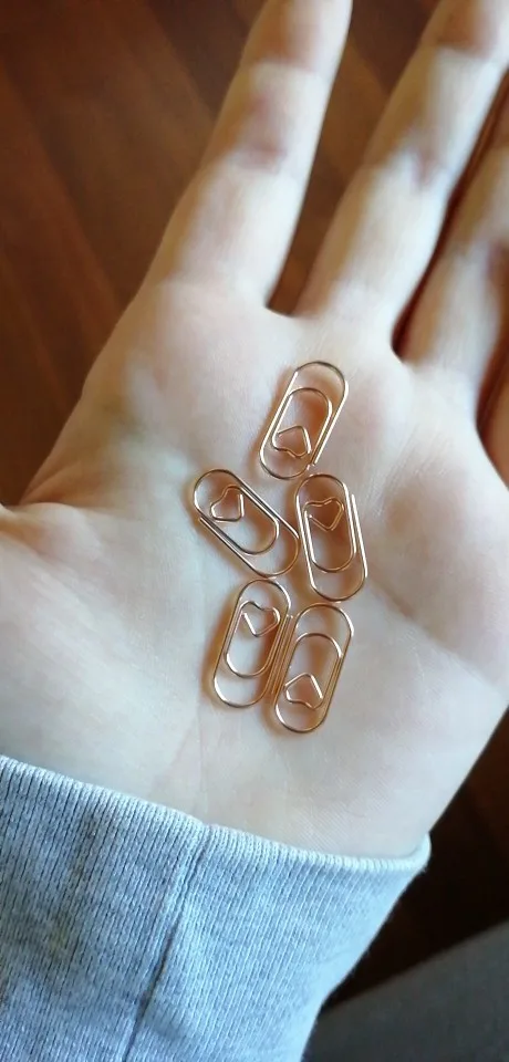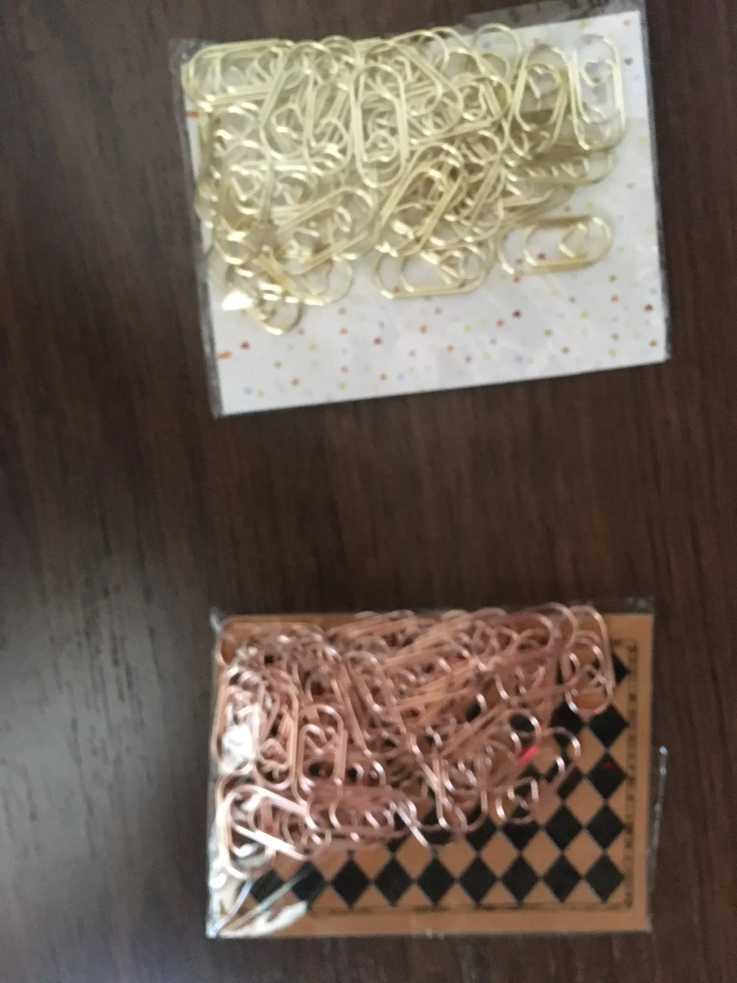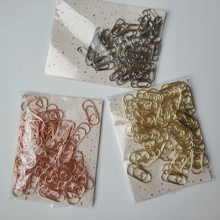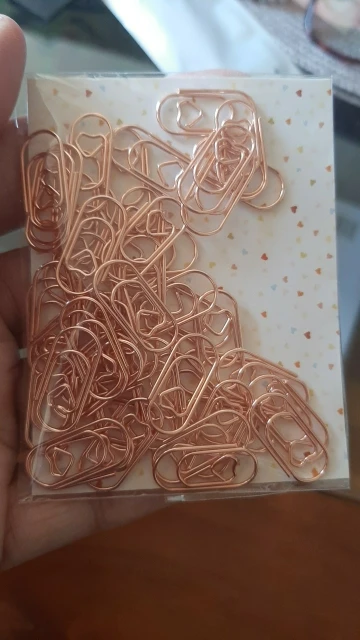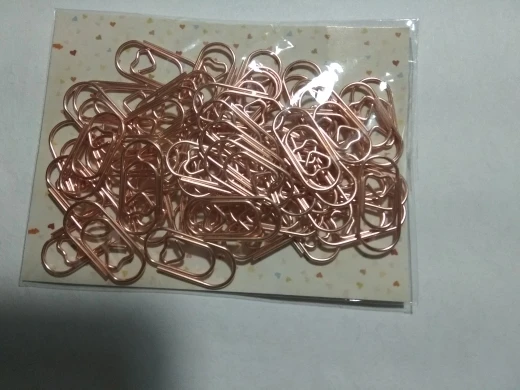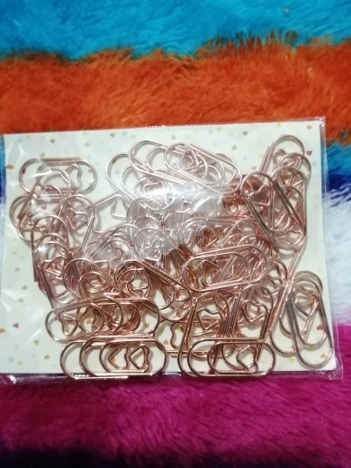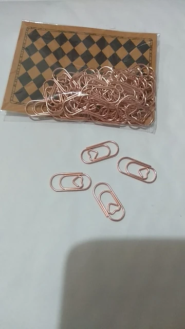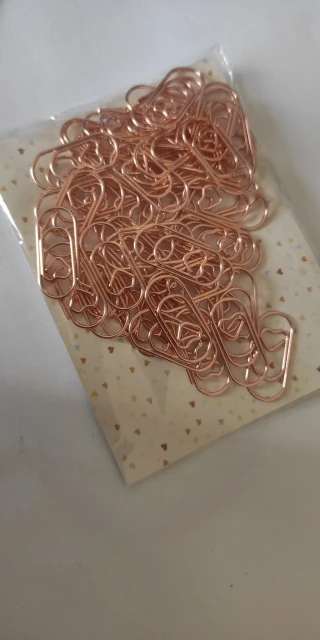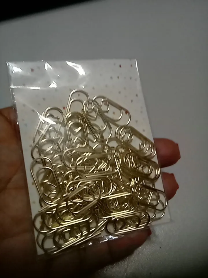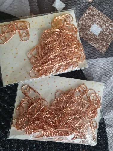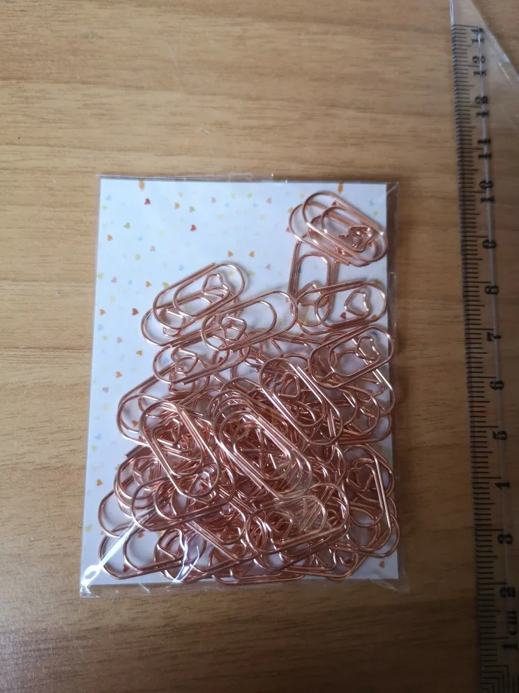 Красивые качественные скрепки. Размер одной скрепки 2 х 0,8 см. Всего было 52 шт, упакованы в пакетик. Посылка была отправлена быстро. Спасибо большое! Рекомендую данный магазин.