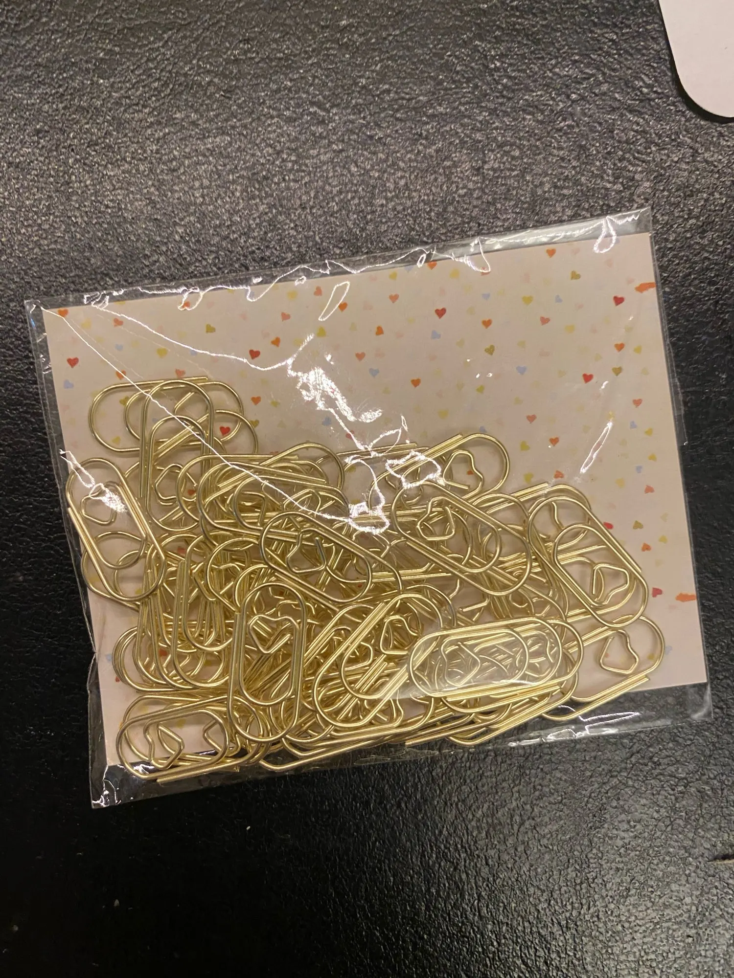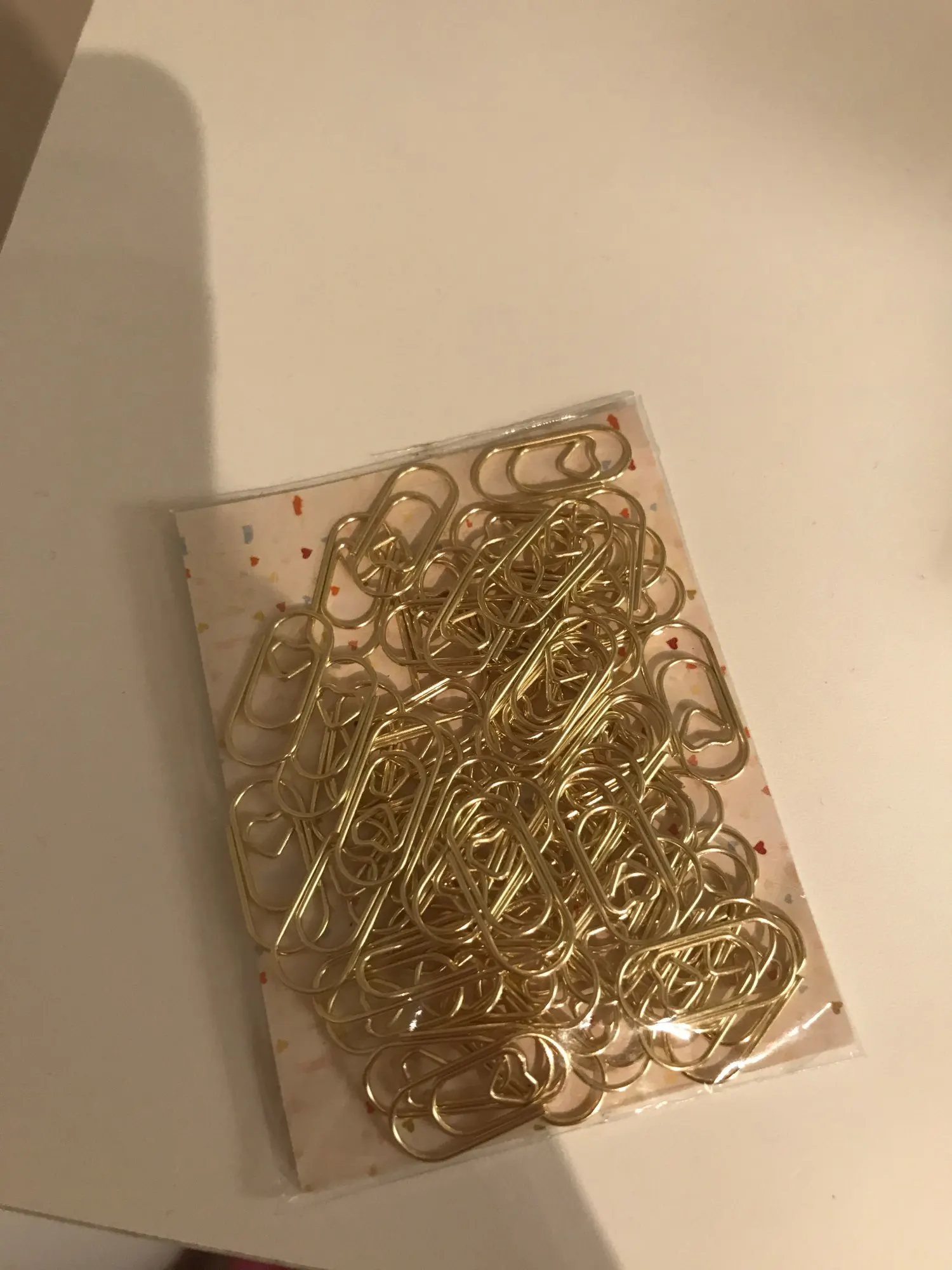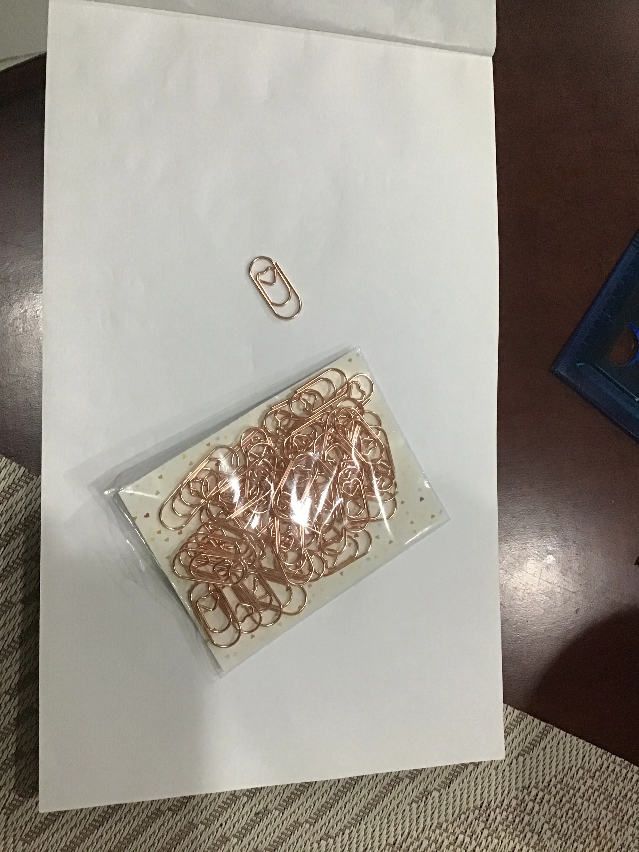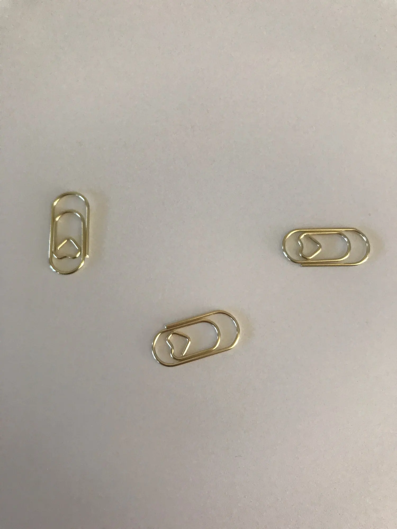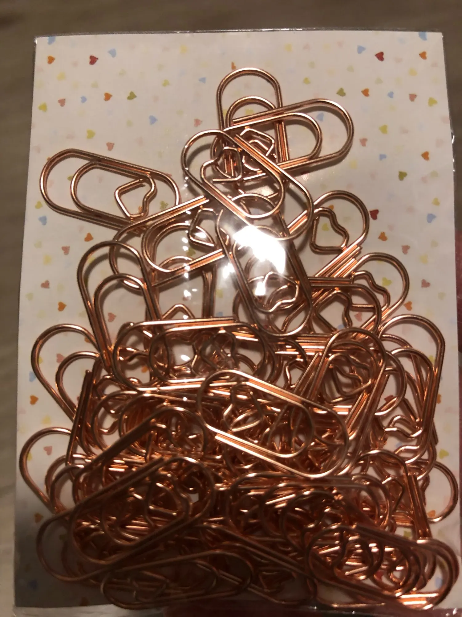 Красивые качественные скрепки. Размер одной скрепки 2 х 0,8 см. Всего было 52 шт, упакованы в пакетик. Посылка была отправлена быстро. Спасибо большое! Рекомендую данный магазин.