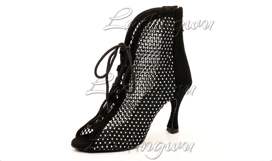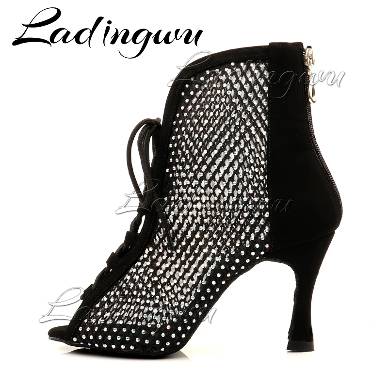 Женские ботинки для латинских танцев Ladingwu, черные ботинки на мя...