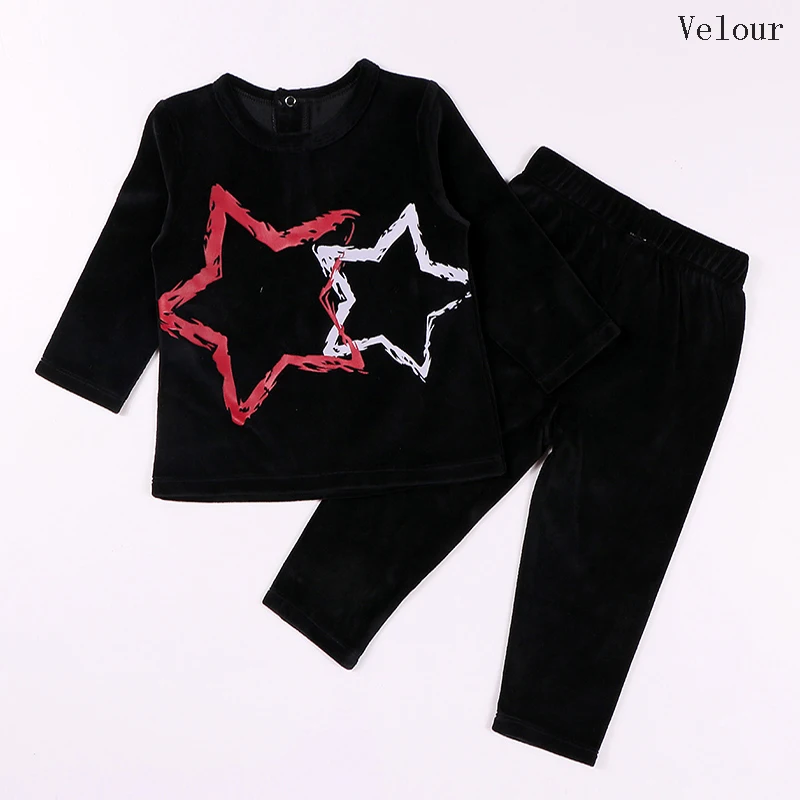 Одежда для малышей из 2 предметов комплект из топа с длинными рукавами и штанов, детский повседневный комплект со звездой, дизайнерская детская одежда черная велюровая модная одежда